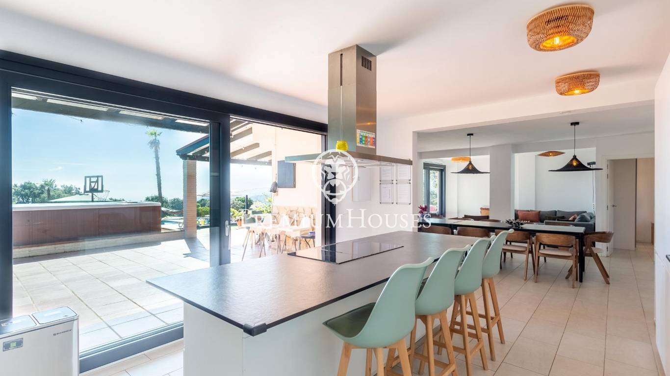 Magnificent property located in Arenys de Munt, in a privileged, peaceful setting surrounded by nature, just 10 minutes from the town centre and 43 minutes from Barcelona. A unique property due to its spaciousness, comfort and impressive panoramic sea views, perfect both as a primary residence and as an investment with great potential for profitability thanks to its tourist licence.The house stands out for its bright open-plan living-dining room, with large windows that flood the space with natural light and allow you to enjoy the spectacular sea views. From here you have direct access to the outdoor area, designed for maximum enjoyment.Outside, there is a fantastic swimming pool, jacuzzi, barbecue area, children's play area and paddle tennis court, creating the ideal setting for family gatherings and outdoor leisure activities. The property also has ample parking space.On the main floor, on the same level as the living-dining room, there are two bedrooms, a full bathroom and a guest toilet, providing comfort and functionality.The first floor has four large bedrooms, two full bathrooms and a charming terrace with sea views, perfect for relaxing and unwinding.On the upper floor is the seventh bedroom, a versatile space ideal as a master suite, office or multipurpose room, adaptable to the needs of each family.In addition, the property is equipped with solar panels and an electric vehicle charger, improving its energy efficiency and reinforcing its commitment to sustainability.An exceptional property that invites us to enjoy the sea and the mountains.