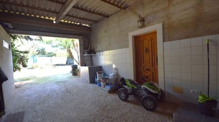 Dispone de espacio de sobra para vehículos y la posibilidad de tener un parking techado. Zona exterior de trasteros y caseta donde guardar maquinaria de cuidado de zonas exteriores.