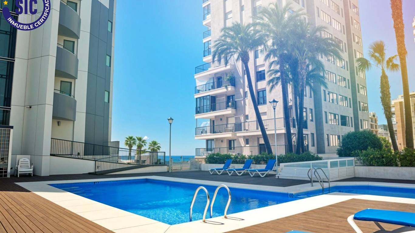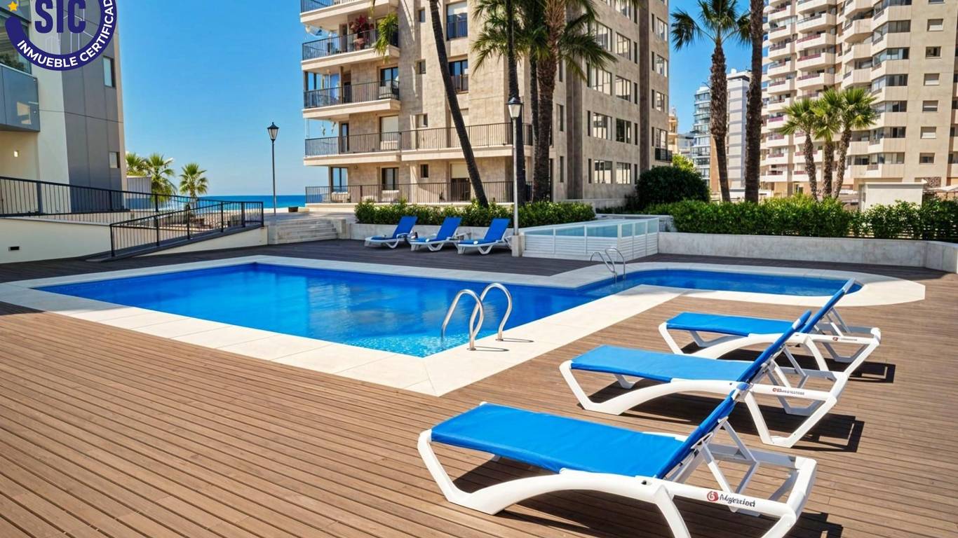 El complejo cuenta con piscina comunitaria, acceso directo al paseo marítimo y en primera línea de playa.