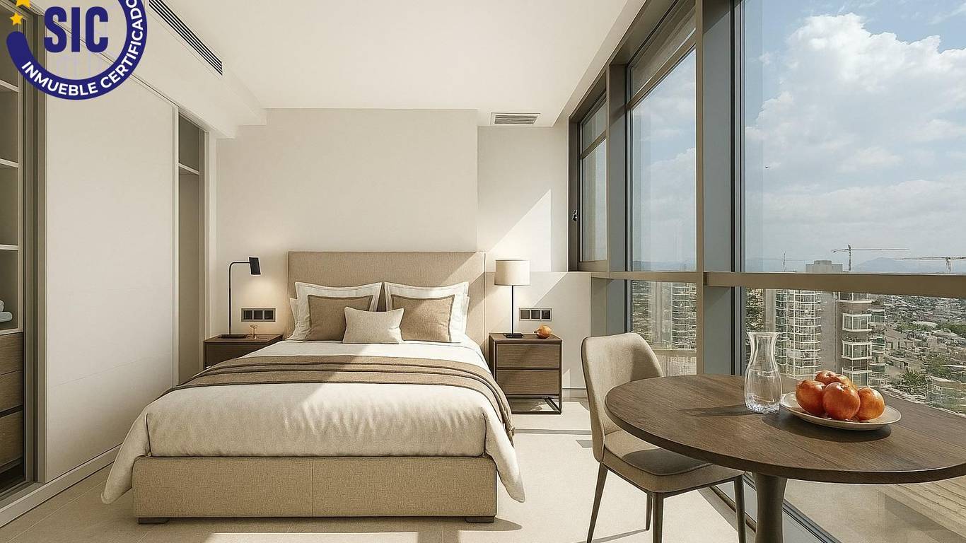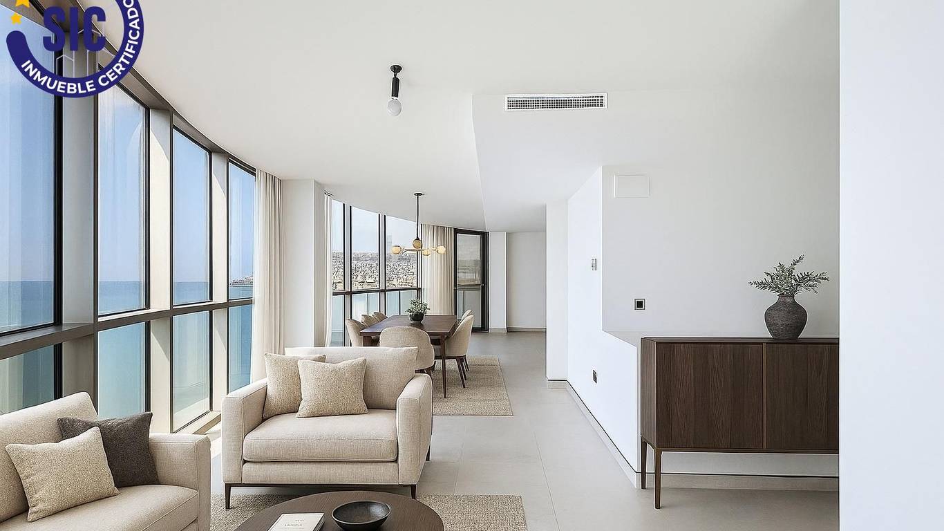 Te presentamos un ático dúplex exclusivo, a estrenar, que ocupa por completo las plantas 17 y 18 del moderno edificio Vistabella en primera línea de la Playa del Arenal. Un auténtico mirador de 360º sobre la bahía de Calpe, donde el mar, el sol y la luz son los protagonistas de cada día.