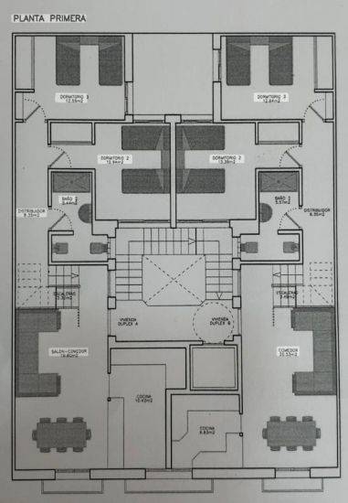 -Planta 1ª y entreplanta: 2 pisos tipo dúplex de 128 m construidos (110 m útiles) cada uno distribuidos en :