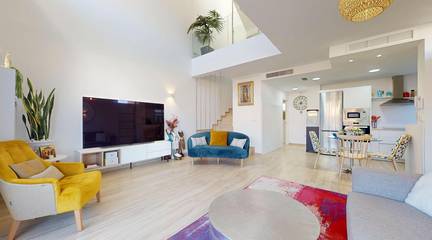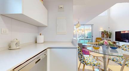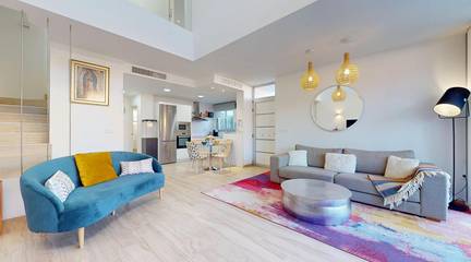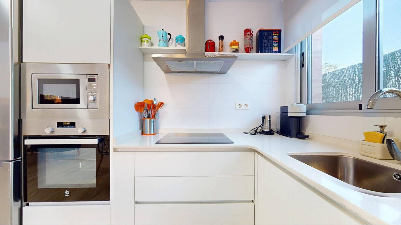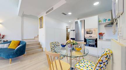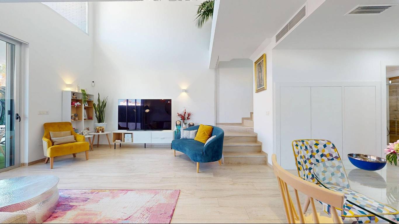 On the ground floor of the property, there is a spacious living room with high ceilings and an integrated kitchen, which will allow you to enjoy a comfortable and functional lifestyle. In addition, there is also one of the bedrooms and a full bathroom. We cannot deny that having a bedroom on the ground floor is always a welcome feature
