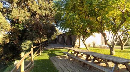 Muy cerca de Barcelona, en el corazón del Penedés, masía catalana del Siglo XII ubicada sobre una pequeña colina rodeada de viñedos.