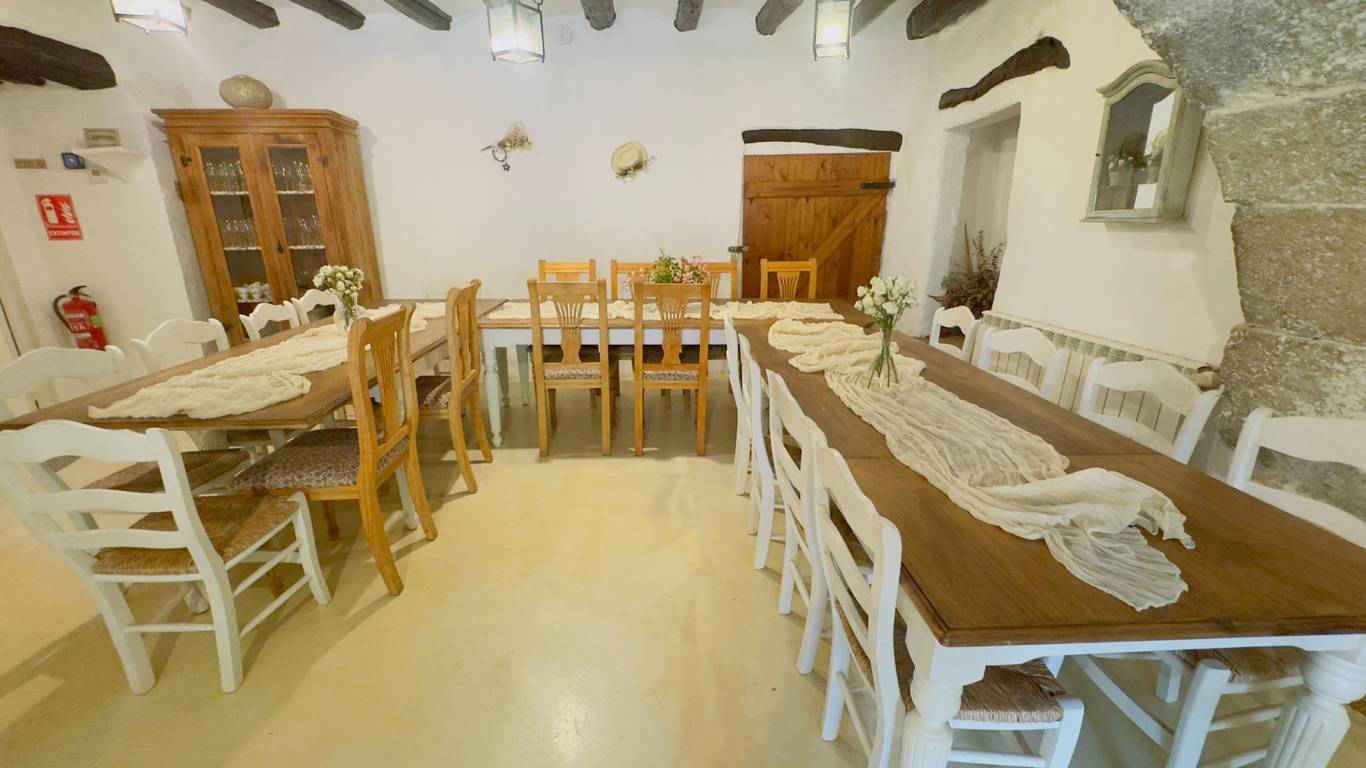 La Finca construida en el Siglo XII, consta de 8 dormitorios, con una construcción principal 687 m2, 6 baños, 2 salas de estar, zona de barbacoa, piscina, vistas panorámicas, una sala para eventos de aproximadamente 120 m2, capacidad máxima de 24 personas.