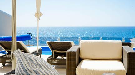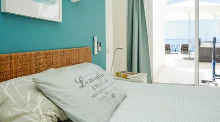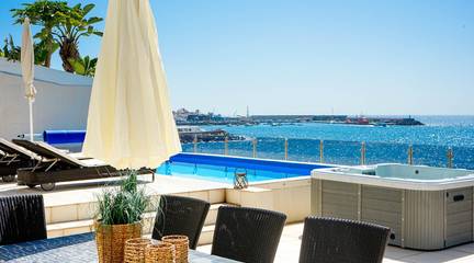 The terrace is undoubtedly one of its main highlights. Spacious, open to the ocean and designed to be enjoyed all year round, it features a private pool facing the views, becoming the central point of the home. Swimming with the Atlantic as a backdrop is a special experience. Next to it, the jacuzzi invites you to relax at sunset under the open sky. Thanks to the slightly elevated position of the property, privacy from the promenade is ensured, allowing you to enjoy the surroundings without sacrificing intimacy. The sun accompanies you from morning until sunset, when the warm light falls over the sea.