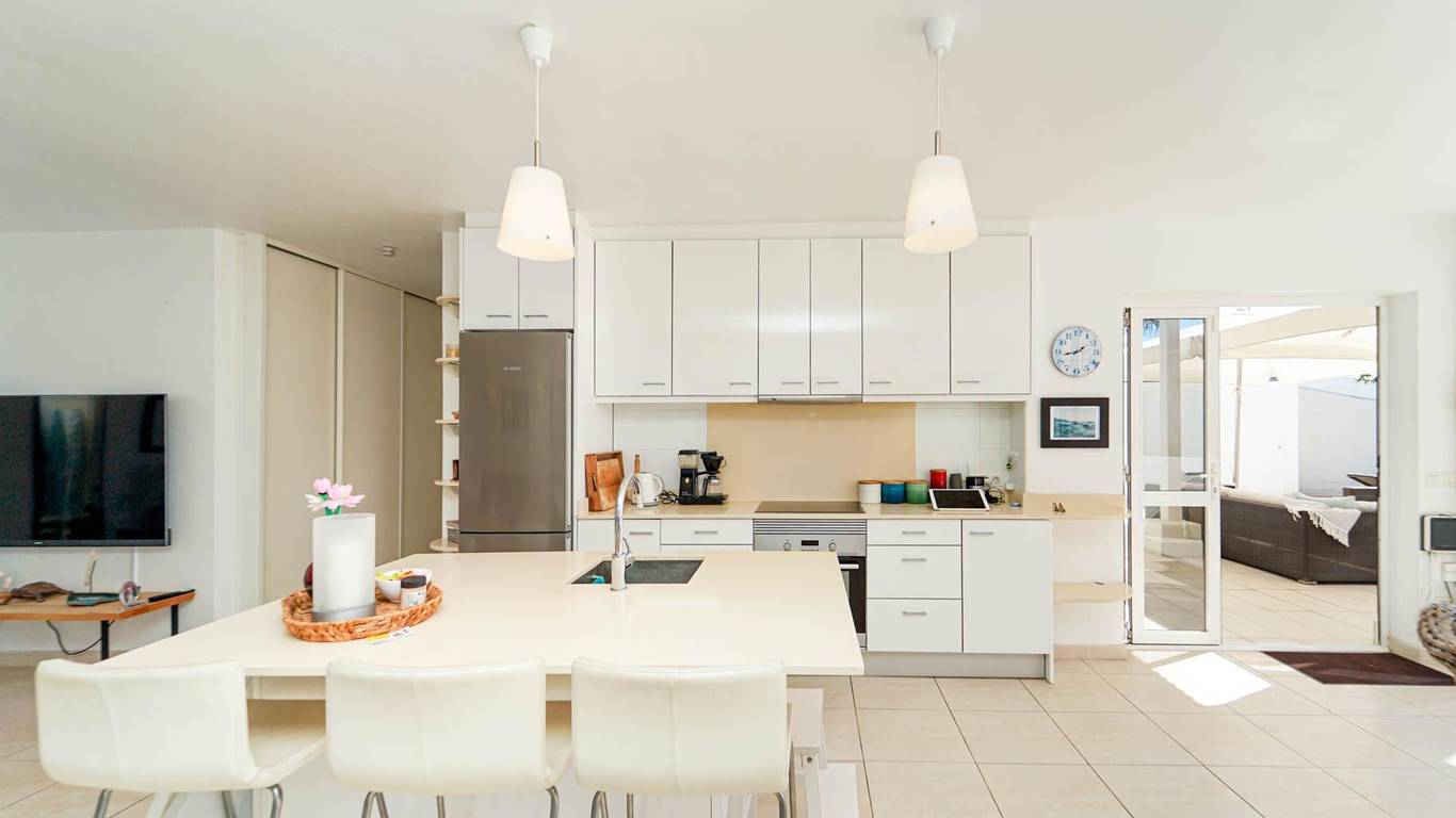 When the large glass front is fully opened, the interior and exterior merge into one single space. The kitchen, dining area and living room blend seamlessly with the terrace and pool area in an open and bright layout where the sea is always present. It is a social and welcoming home that reflects the relaxed and maritime character that makes Arguineguín so special.