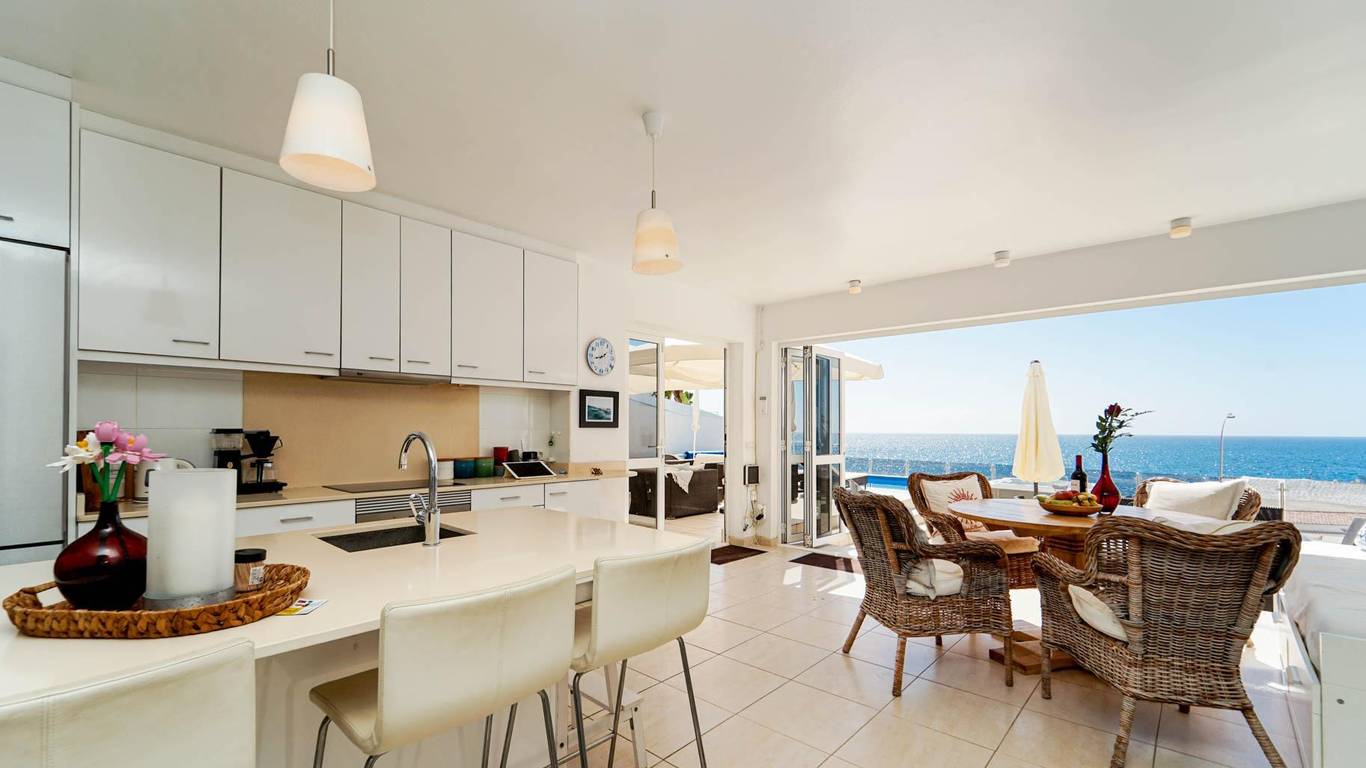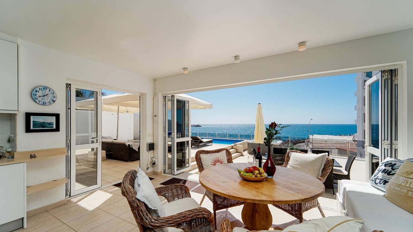 In Arguineguín there are very few properties located as close to the sea as this one. Situated frontline by the coast, with the open Atlantic directly in front of the home and the harbour clearly visible on the horizon, here the sea becomes part of everyday life. You can feel the life by the shoreline and the movement of the boats, yet at the same time the property feels peaceful and private.