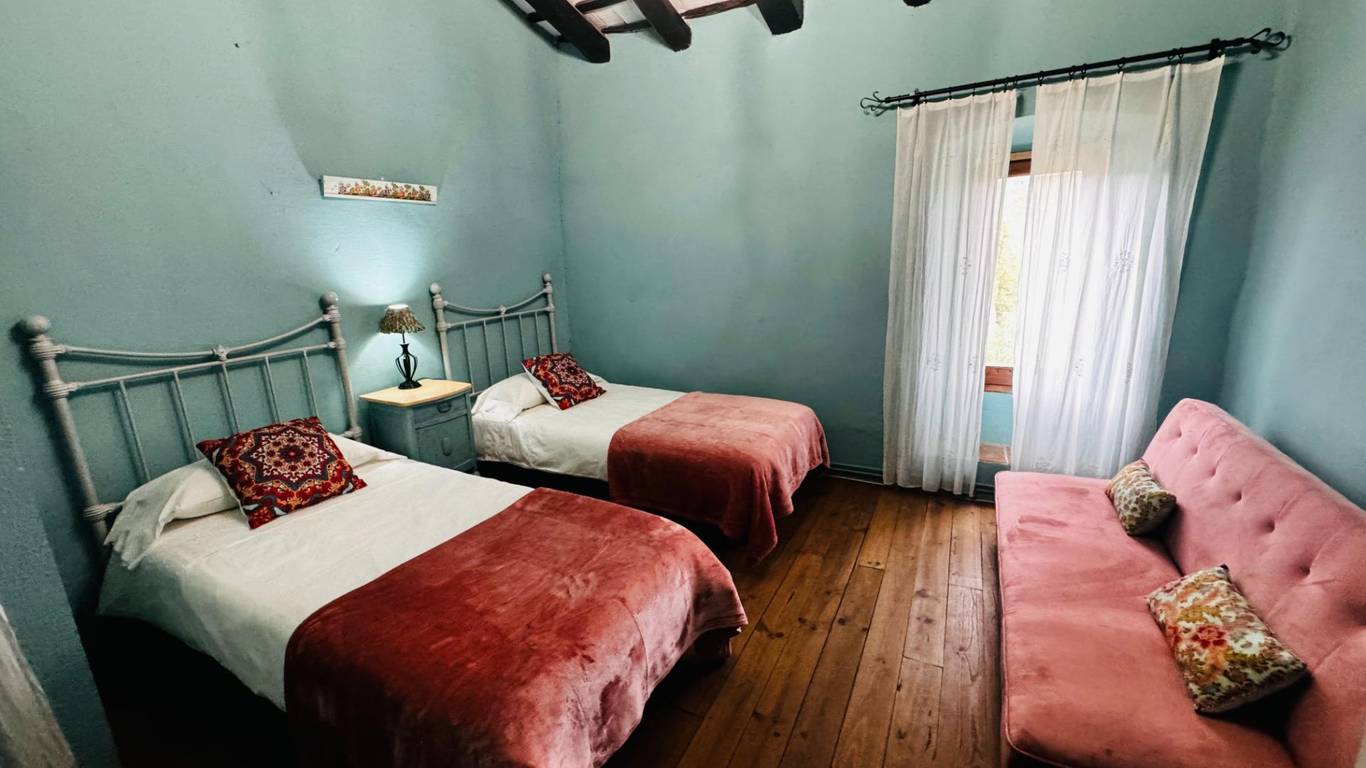 La Finca construida en el Siglo XII, consta de 8 dormitorios, con una construcción principal 687 m2, 6 baños, 2 salas de estar, zona de barbacoa, piscina, vistas panorámicas, una sala para eventos de aproximadamente 120 m2, capacidad máxima de 24 personas.