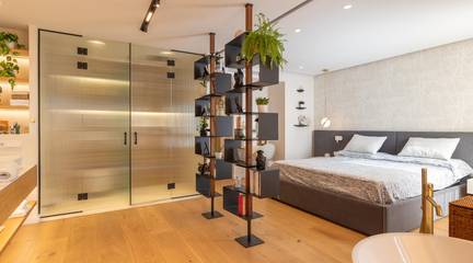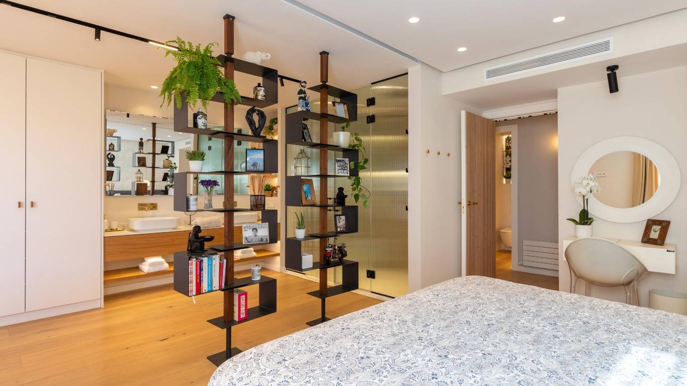 Cuando llega el descanso, la suite principal es un hotel en casa: baño integrado con ducha y bañera de hidromasaje para elegir ritmo o pausa. Las otras tres habitaciones (dos dobles y una individual) se adaptan a todo: elegante despacho, dormitorio infantil o espacio para recibir a la familia el fin de semana. Dos baños diseñados para el día a día exigente: uno en el pasillo, funcional e impecable el otro, privado en la suite, para momentos de bienestar sin mirar el reloj. Todos equipados con sanitarios Villeroy amp Boch y grifería Hansgrohe.