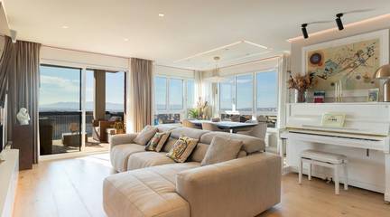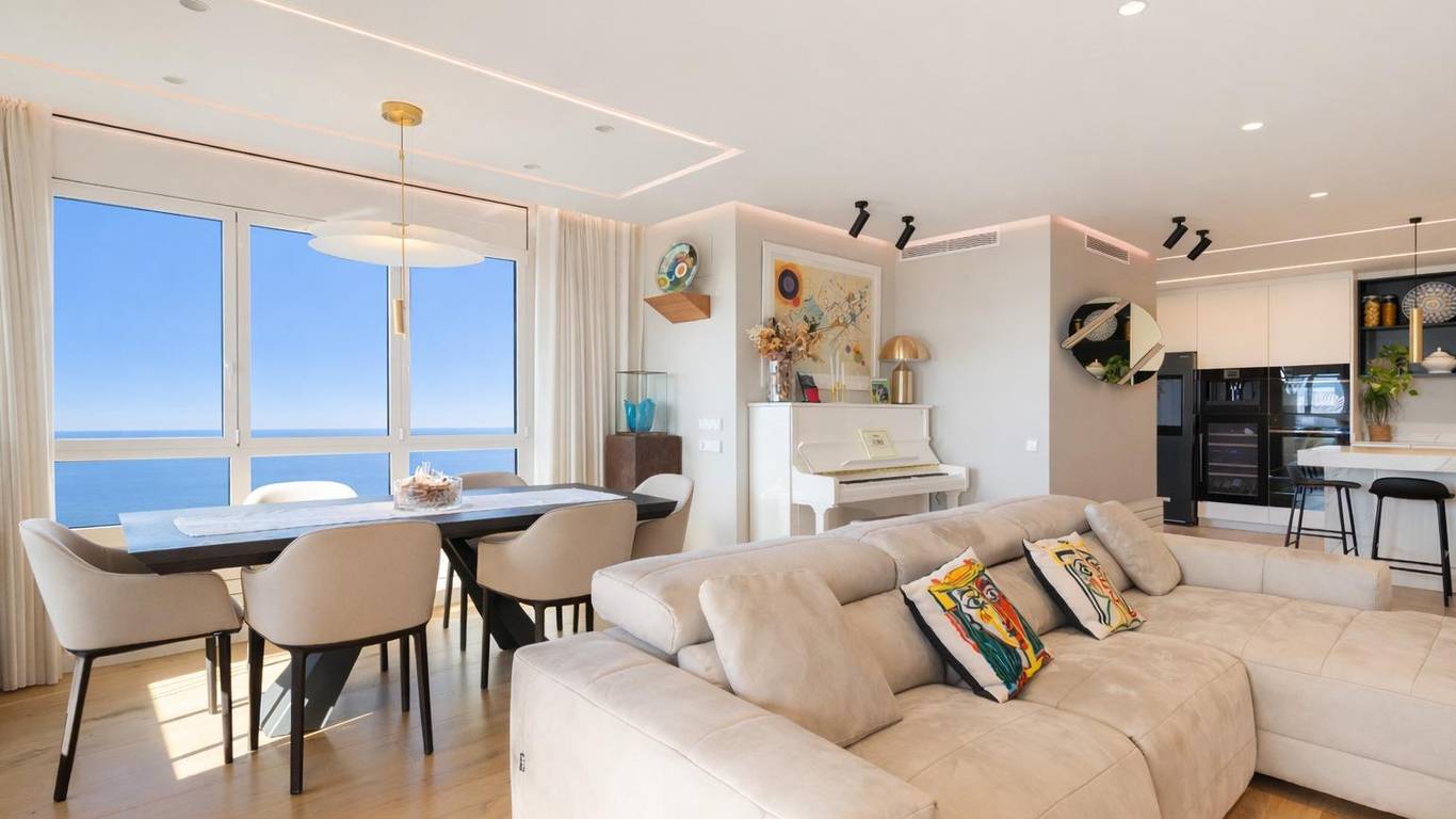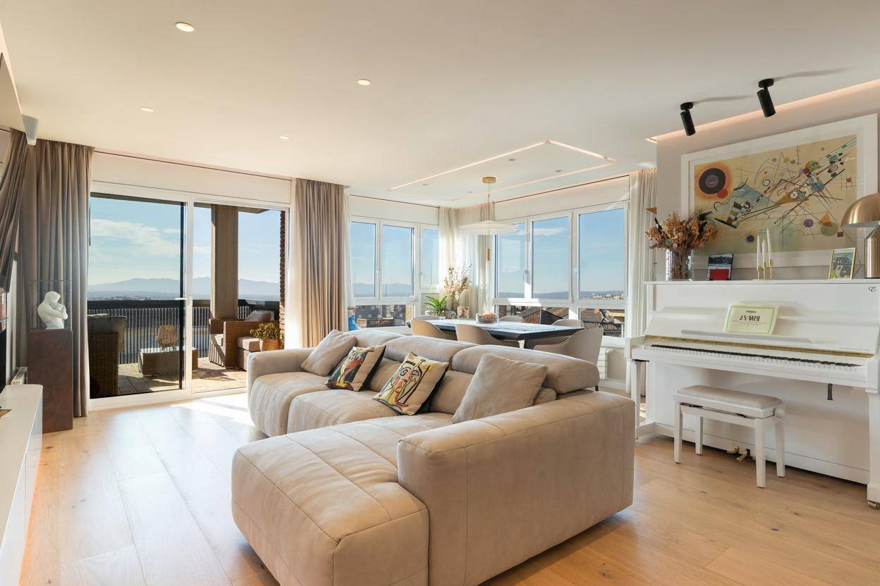 Y cuando llegan los amigos La terraza se convierte en tu mejor escenario: largas sobremesas, risas que se alargan y esa vista abierta que invita al silencio cuando hace falta. El salón acompaña: amplitud para exponer arte, barra para servir cócteles, luces que transforman el ambiente y una cocina preparada para que todo salga perfecto.