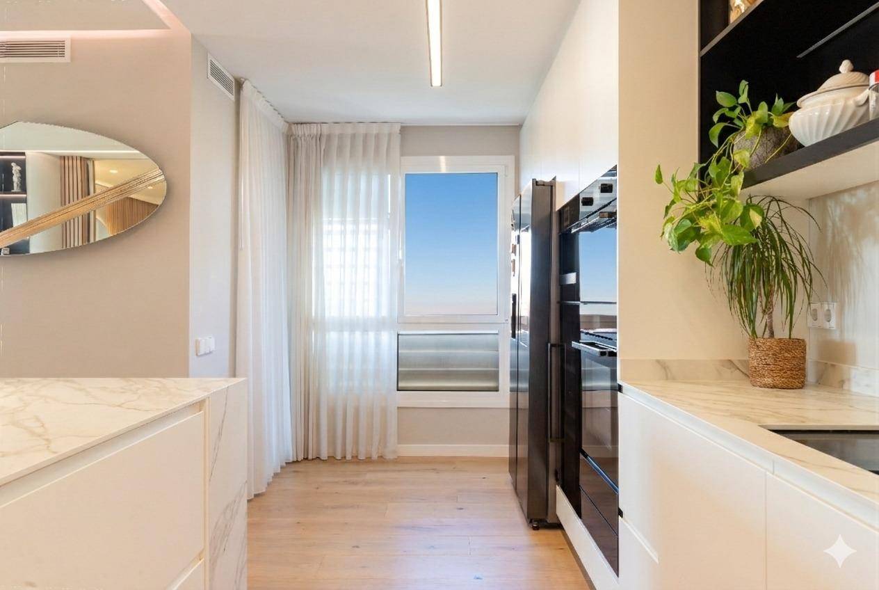 Aquí la vida cotidiana también tiene categoría: solo un vecino por planta, acceso exclusivo con ascensor directo a la vivienda, portería y finca con zona ajardinada para desconectar entre reuniones. Entrar y sentir que todo está pensado: reforma reciente de alta gama, materiales nobles (parquet de madera natural y mármol italiano), acabados precisos, iluminación perimetral con selección de color, puerta blindada de alta seguridad, sistema de climatización con Airzone y radiadores de diseño Runtal.