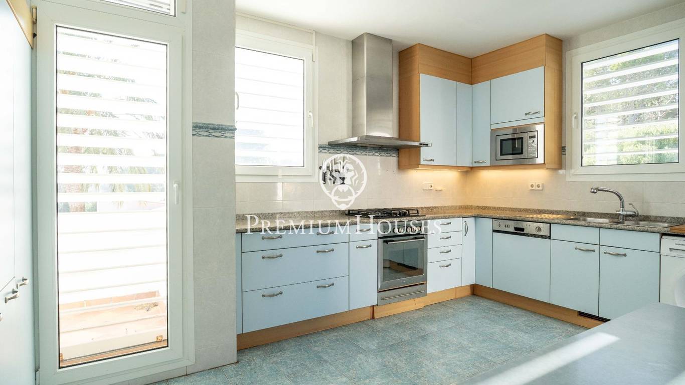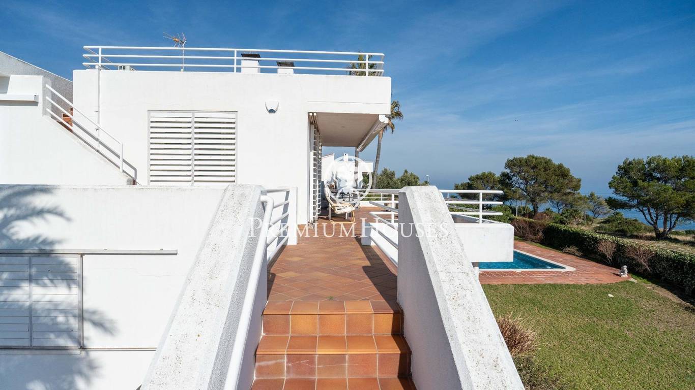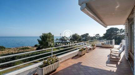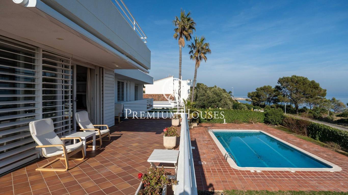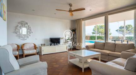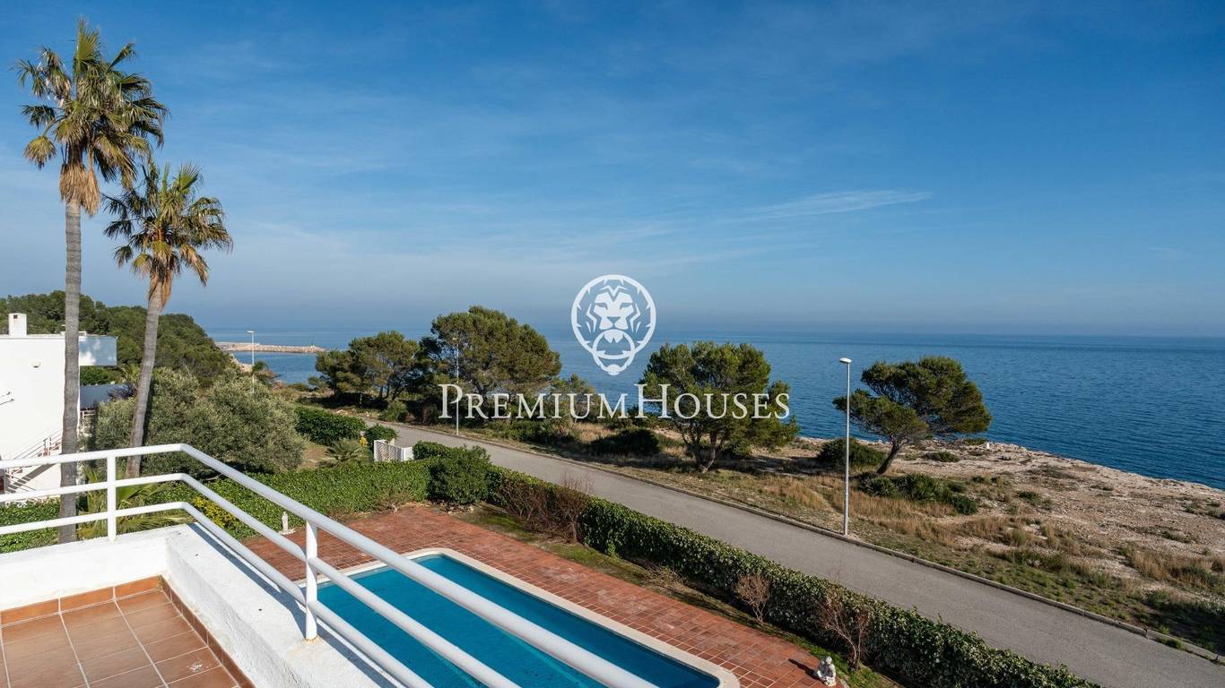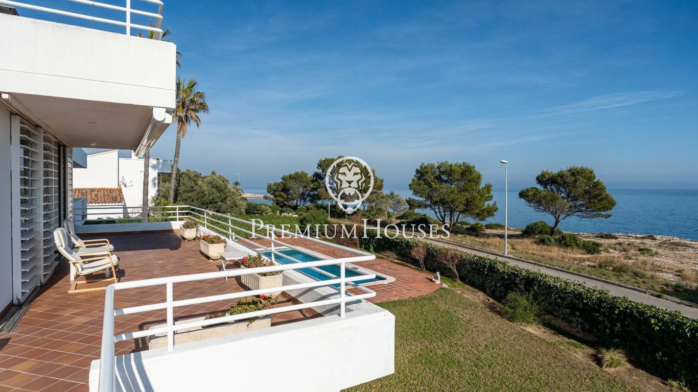 This house with a garden and swimming pool is located in the Calafat residential area, right on the seafront.The property is spread over two levels, both with separate entrances.On the ground floor, the entrance hall leads to the living area, consisting of a living room with access to the covered porch, integrated into the garden, and a kitchen with direct access to the outside. The night area has four double bedrooms, one of which is en suite, and a single bedroom, also en suite. A full bathroom and a guest toilet serve this floor. On this same level is the garage, with capacity for two vehicles.The first floor has a living-dining room with a fireplace and access to a terrace with open sea views. Next to this is a separate kitchen with direct access to the terrace. This floor is completed by three double bedrooms with access to the outside, one of which is en suite with a designer shower, and a full bathroom.Calafat is a quiet residential area consisting mainly of chalets and villas that forms part of the municipality of L'Ametlla de Mar. It is notable for its small coves and beaches with crystal clear waters, as well as its marina, Port de Calafat, and the speed circuit, Circuit Calafat.
