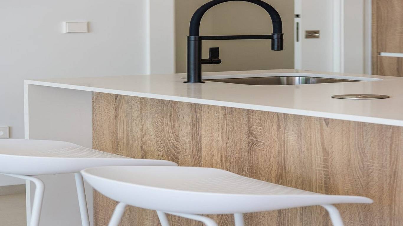 The properties comprise three double bedrooms (all with fitted wardrobes), two bathrooms (en-suite to the master bedroom) and a toilet, a fully equipped modern kitchen (with breakfast bar) and an open plan living/dining area, leading to the spacious tiled garden and private swimming pool.