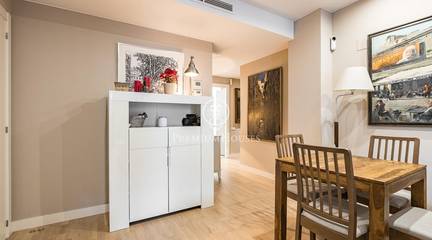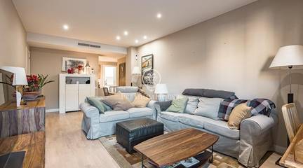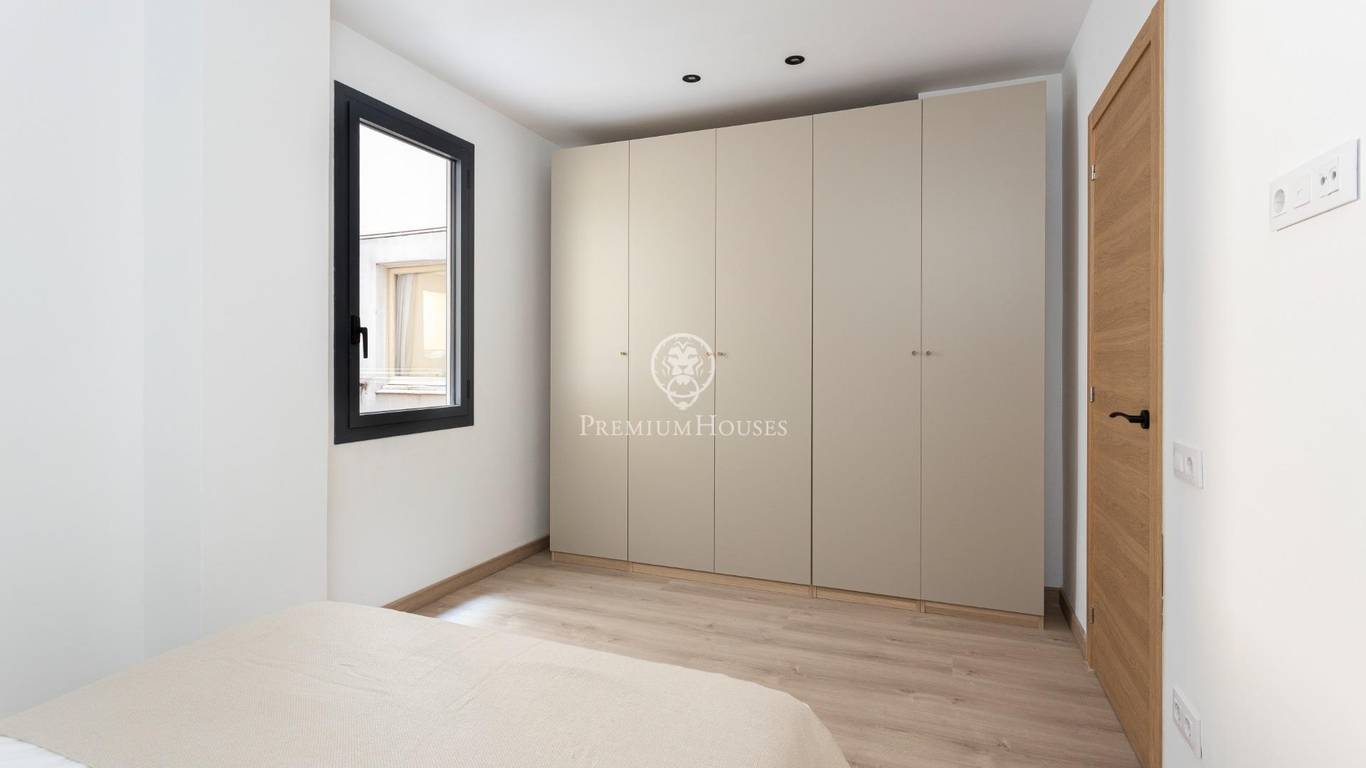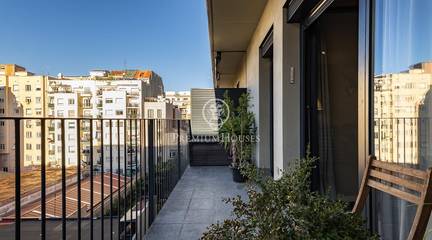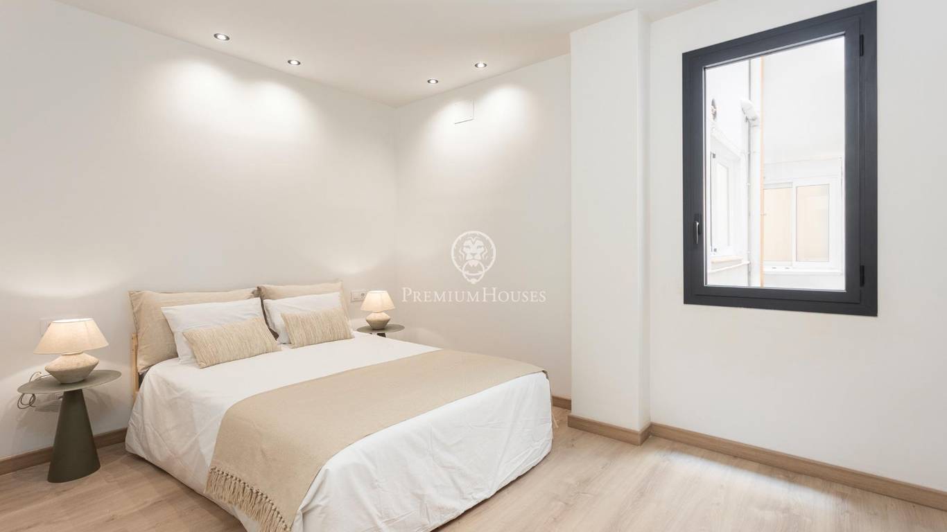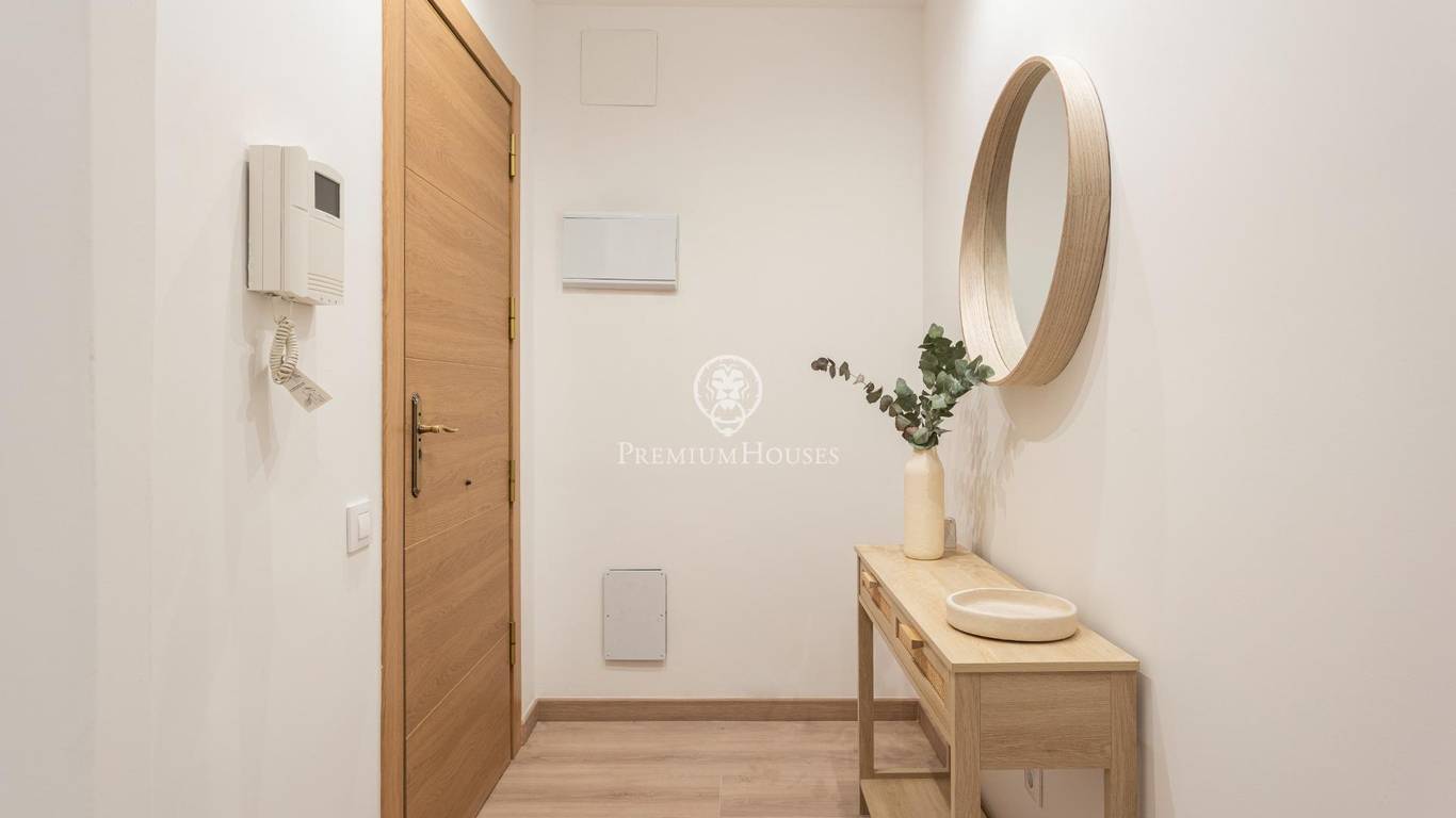 Exclusiva propiedad de 105m2 totalmente reformada con terraza, de gran luminosidad, acabados de alta calidad y muy buena distribución.Ubicada en un segundo piso (tercera planta real) de una finca esquinera del año 1975 con servicio de conserjería. Asimismo la propiedad incluye una plaza de parking para coche pequeño o moto en la misma finca.La zona de día encontramos un salón-comedor con un gran ventanal ideal para disfrutar de la luz natural durante todo el día y por el mismo se accede a la acogedora terraza. La cocina abierta, de diseño moderno y funcional, está totalmente integrada en el espacio con una práctica península y está equipada con electrodomésticos de la línea Bosch, incluyendo horno, placa de inducción, lavavajillas, campana extractora y microondas. La encimera es de la firma Dekton by Cosentino en sofisticado acabado mate. Además cuenta con un práctico lavadero independiente.La zona de noche se compone de: 1 amplia y luminosa habitación en suite, 1 habitación doble y 1habitación individual. Todas ellas con armarios empotrados. En total, la vivienda ofrece dos baños completos, prácticos y de diseño, con revestimiento porcelánico mate, grifería de ducha empotrada e iluminación led.La propiedad esta climatizada con aire acondicionado por conductos frío/calor de la marca Mitsubishi y dispone de cerramientos de aluminio de doble y cuadruple acristalamiento con rotura de puente térmico y aislamiento acustico.Ubicación inmejorable, en una de las zonas más demandadas de Barcelona, a pocos pasos de Passeig de Sant Joan y Plaça Tetuán, perfectamente comunicado y rodeado de todo tipo de comercios y servicios.Ideal para quienes buscan confort, elegancia y ubicación privilegiada.