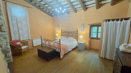 La Finca construida en el Siglo XII, consta de 8 dormitorios, con una construcción principal 687 m2, 6 baños, 2 salas de estar, zona de barbacoa, piscina, vistas panorámicas, una sala para eventos de aproximadamente 120 m2, capacidad máxima de 24 personas.