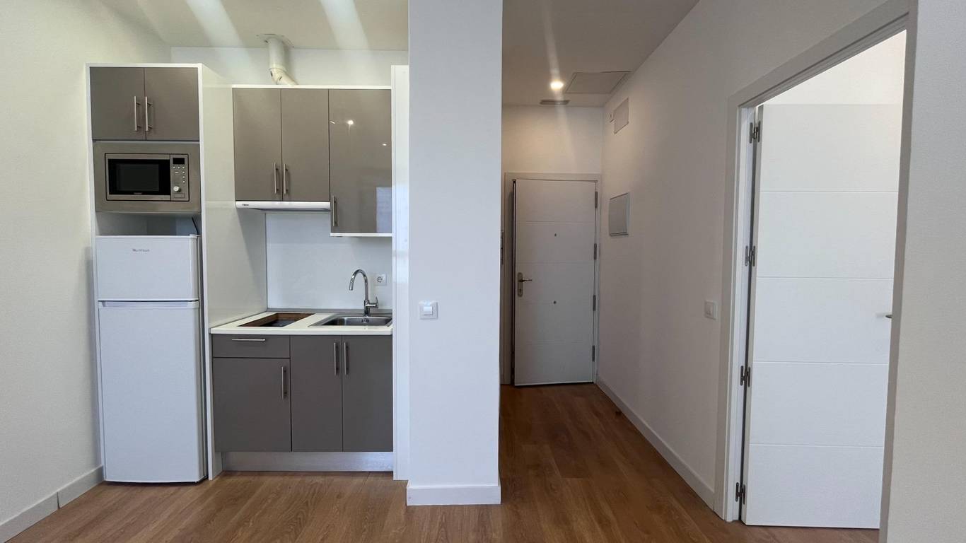 Amplio hall de entrada, salón con cocina americana amueblada y equipada, baño completo con plato de ducha y estancia/cuarto independiente.