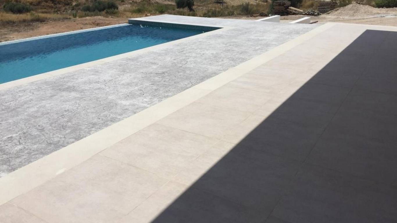 Private swimming pool 4x8 meters with a concrete press sunbathing terrace to connect the house with the pool.