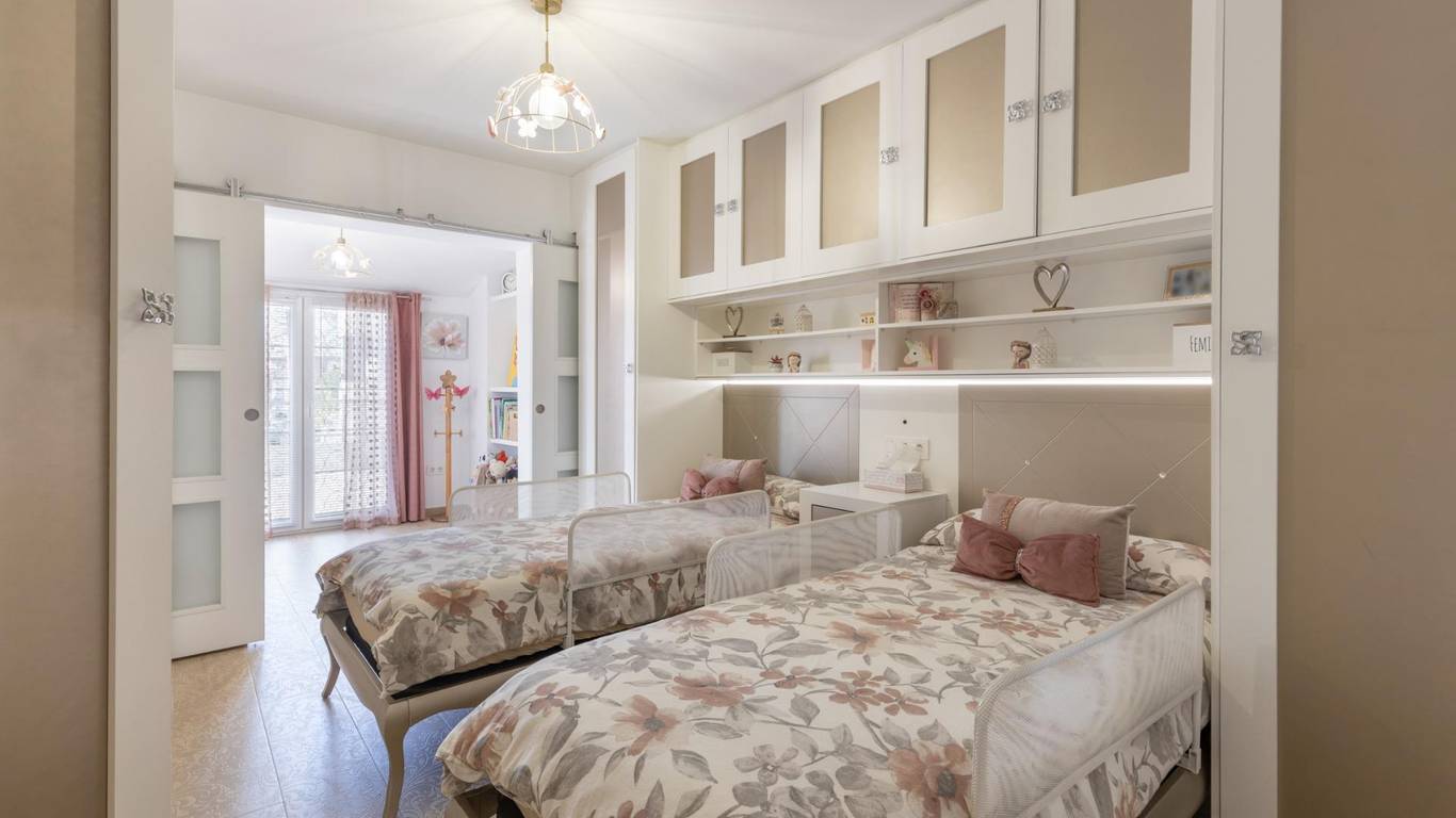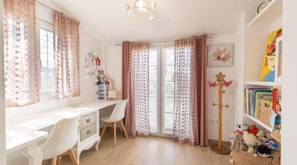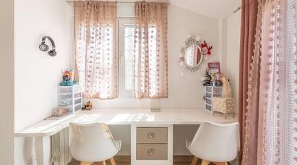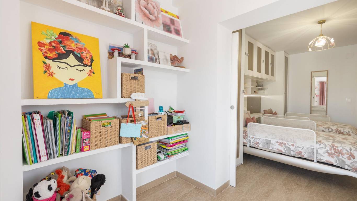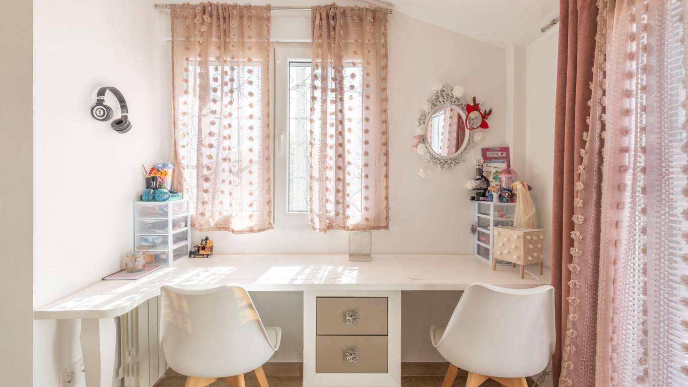 Dormitorio Infantil Premium: Un espacio doble con mobiliario a medida y zona de estudio, con salida a una gran terraza orientada al suroeste que garantiza luz natural durante todo el día.