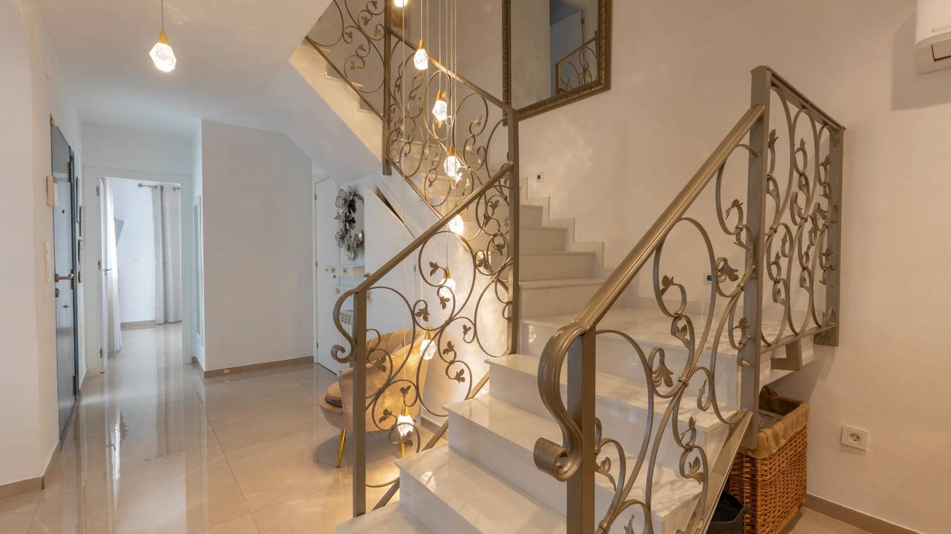 Al cruzar el umbral, la vivienda nos recibe con un imponente recibidor que juega con la doble altura gracias a su conexión con la escalera, bañando el espacio de luz.