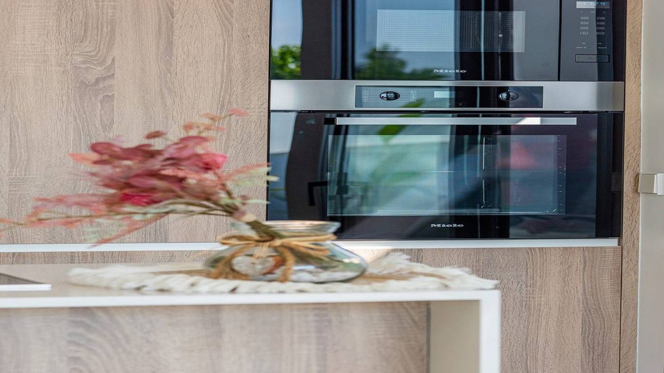 The properties comprise three double bedrooms (all with fitted wardrobes), two bathrooms (en-suite to the master bedroom) and a toilet, a fully equipped modern kitchen (with breakfast bar) and an open plan living/dining area, leading to the spacious tiled garden and private swimming pool.
