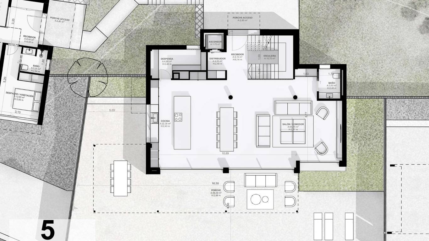 Planning and Design: Central air conditioning, Air Conditioning, Alarm System, Built-in wardrobe, Lift, Safe, Heating, Storeroom, Laundry room, Reinforced door, Sauna, New building
