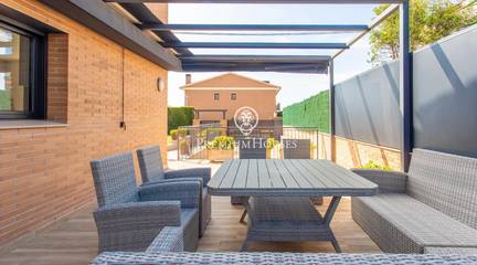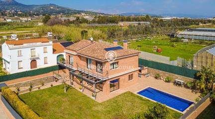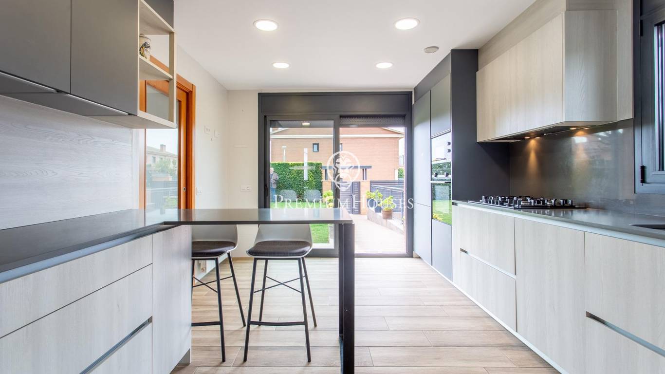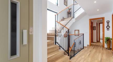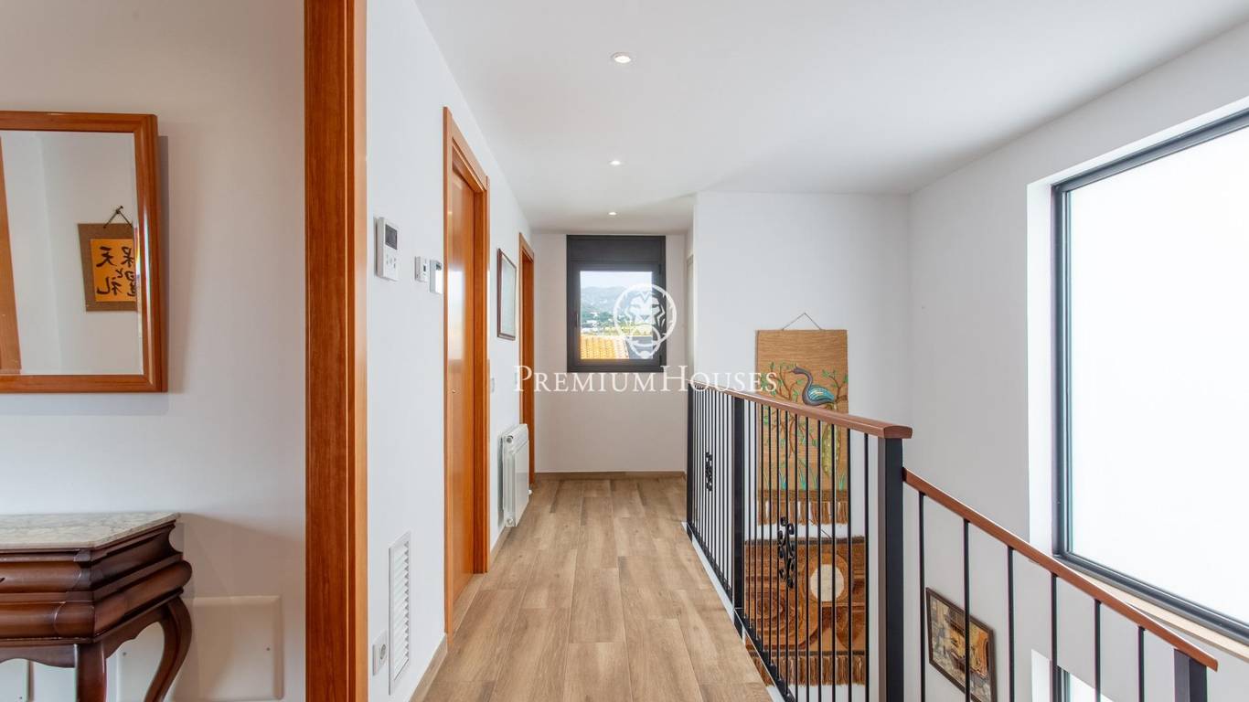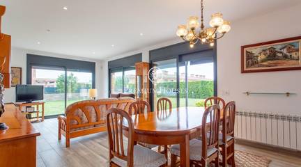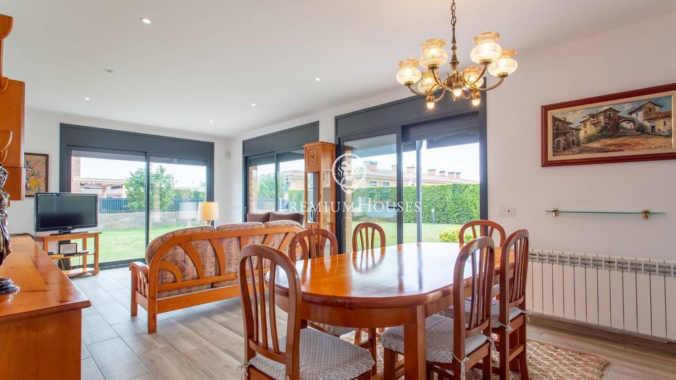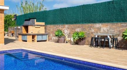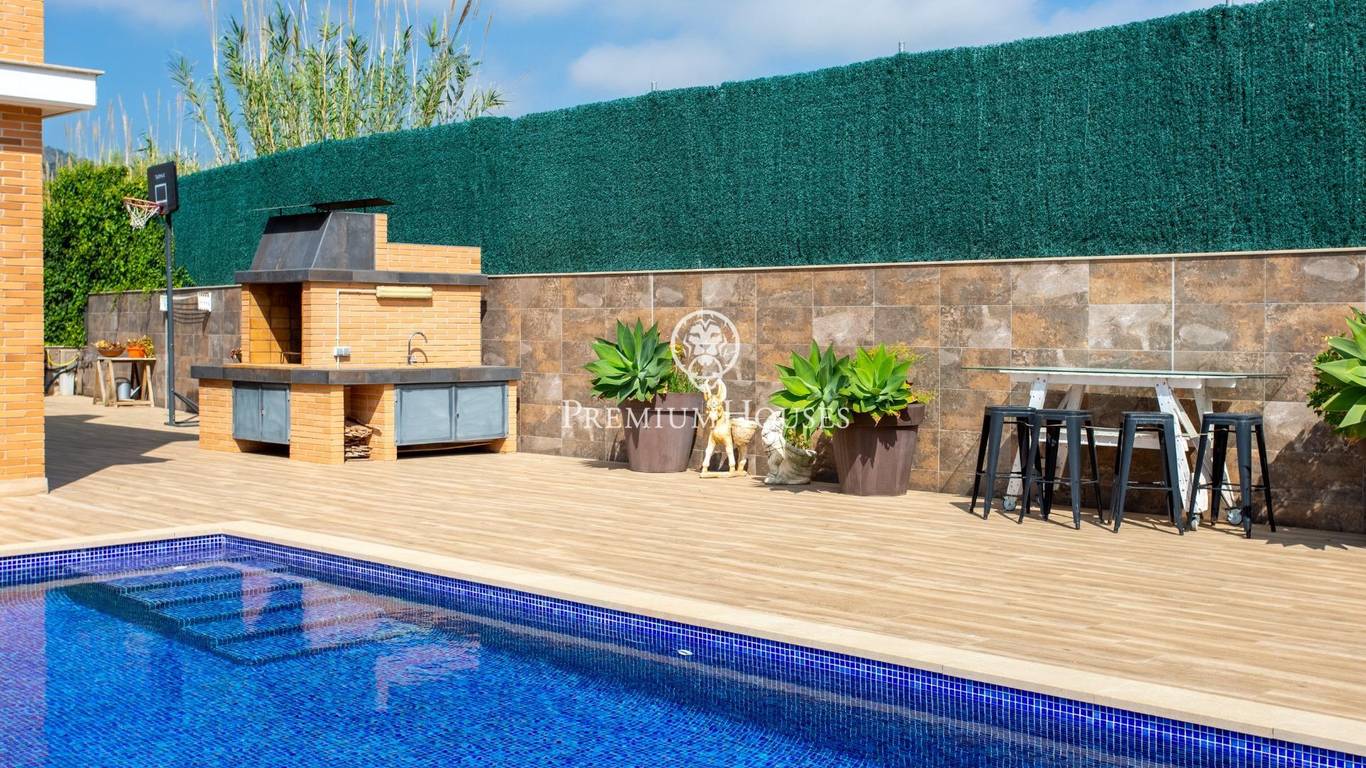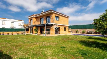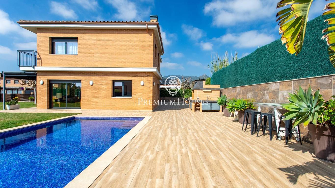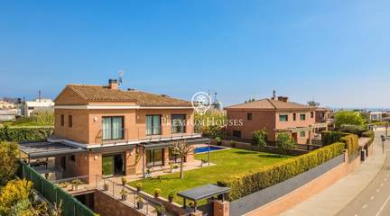 A home where the outdoors takes centre stage.This elegant property, built in 2019, stands on a completely flat, double plot of 747 m a rare privilege that allows you to enjoy space, privacy and sunshine all day long. With 357 m of floor space spread over three floors and connected by a lift, the house combines comfort, design and functionality.The living area opens onto the garden, creating a natural connection between indoors and outdoors. The modern and practical kitchen-diner has direct access to the garden, as does the bright living-dining room. On this floor, there is also a double bedroom and a full bathroom, ideal for guests or as a study.The upper floor houses the sleeping area with four external bedrooms, including an elegant en-suite with a dressing room and private bathroom, all with access to a terrace and unobstructed views.The exterior is undoubtedly one of the propertys main attractions: a spacious, completely flat garden, meticulously maintained, featuring a saltwater swimming pool, a summer dining area and a spectacular built-in barbecue with a preparation area, perfect for long, leisurely meals al fresco.The property also features a four-car garage, an office area and storage spaces.Located in Cabrera de Mar, a quiet residential area with excellent links to the beach, the town centre and the motorway, and very close to a newly built international school a real bonus for families seeking a high quality of life.A home designed to make the most of space, natural light and the Mediterranean lifestyle.