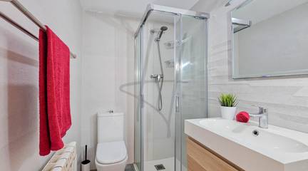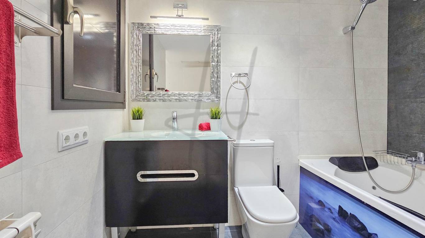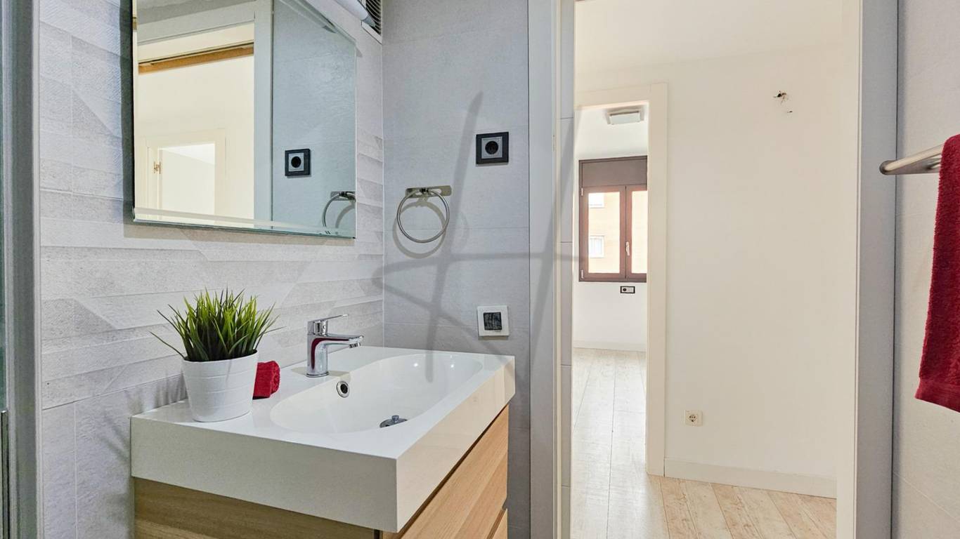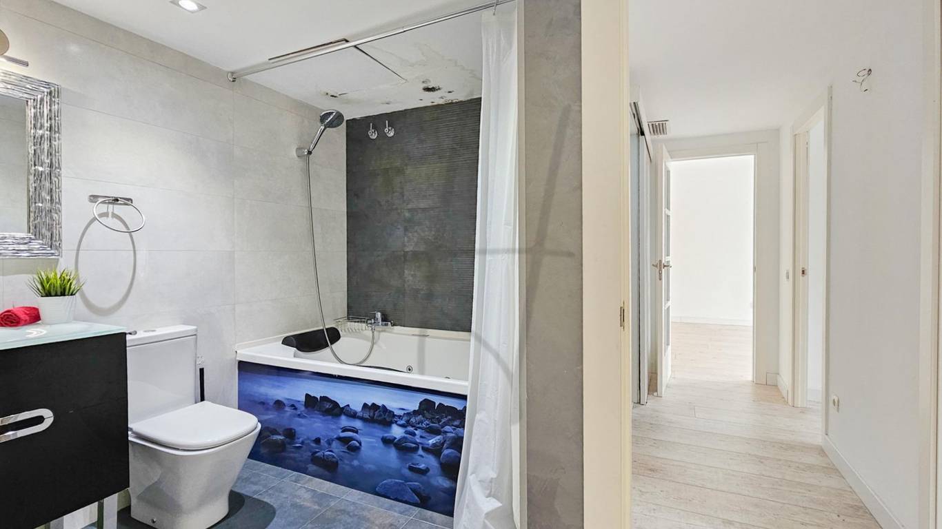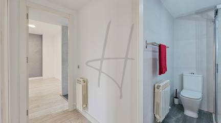 La zona de descanso se compone de tres dormitorios, destacando el dormitorio principal tipo suite, que dispone de su propio baño completo con bañera, creando un espacio íntimo y confortable. Los otros dos dormitorios, de carácter individual, son perfectos como habitaciones juveniles, despacho o zona de invitados. La vivienda cuenta además con un segundo baño completo con ducha, práctico y bien distribuido.