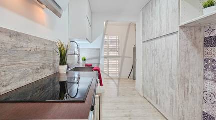 En cuanto a calidades, la vivienda ofrece suelo de parquet, carpintería exterior de aluminio con doble acristalamiento tipo Climalit, carpintería interior lacada en blanco que aporta luminosidad y elegancia, así como persianas automáticas en toda la vivienda para un mayor confort.