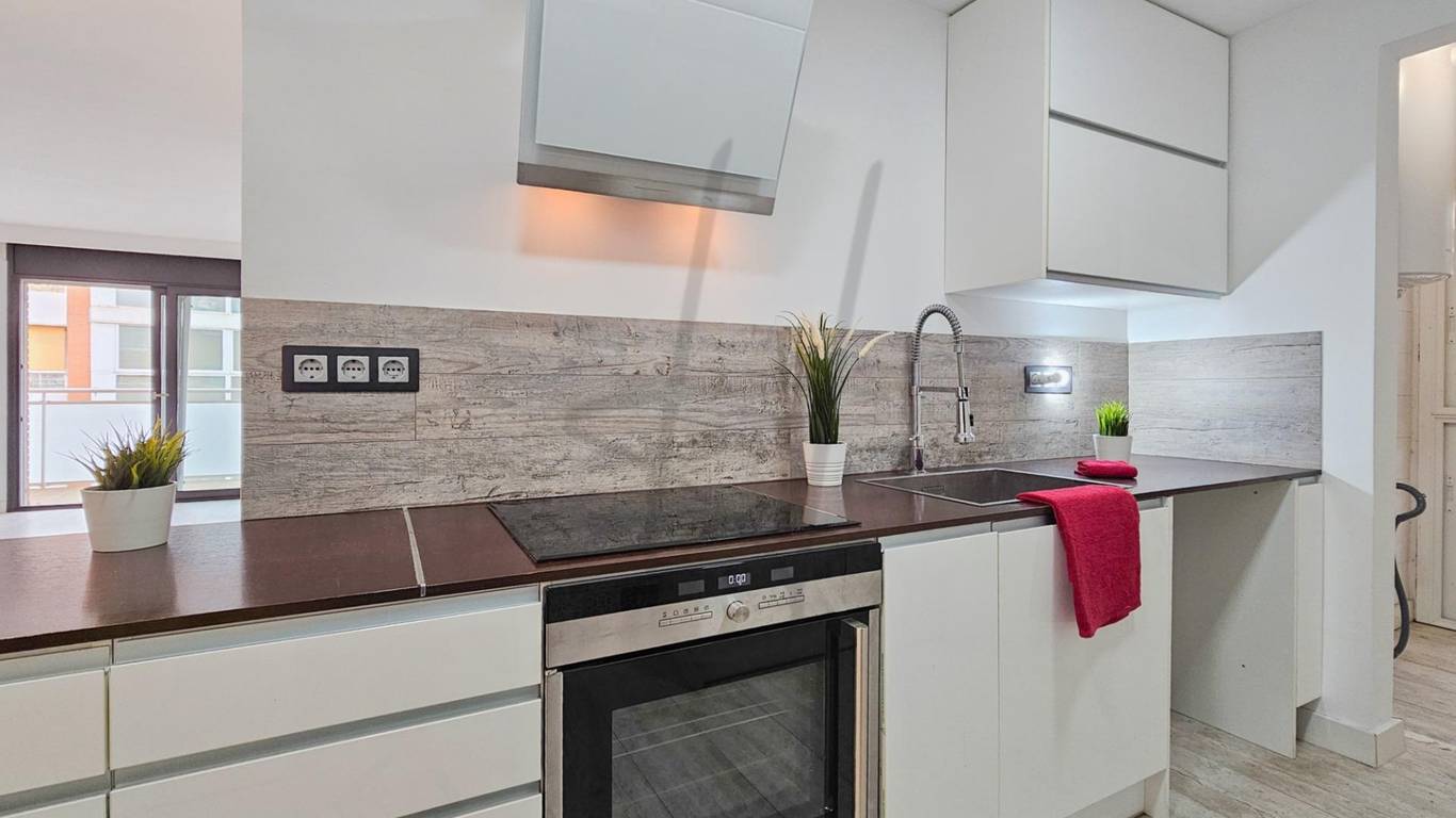 Al entrar, nos recibe un amplio y acogedor salón-comedor con cocina americana integrada, un espacio moderno y funcional que invita a compartir momentos en familia o con amigos. Desde aquí se accede a un agradable balcón que aporta luz natural y una agradable conexión con el exterior.