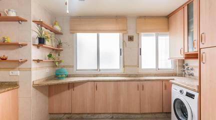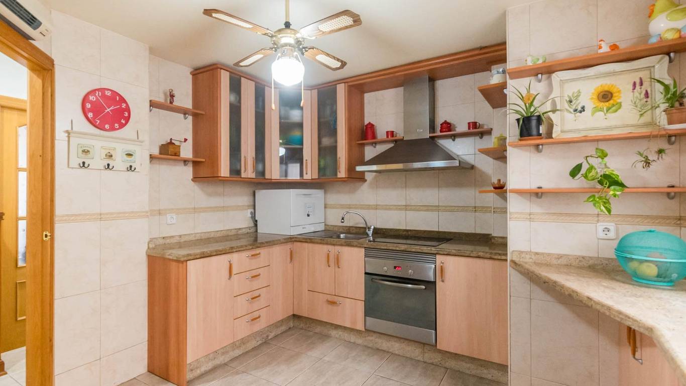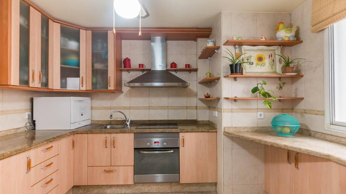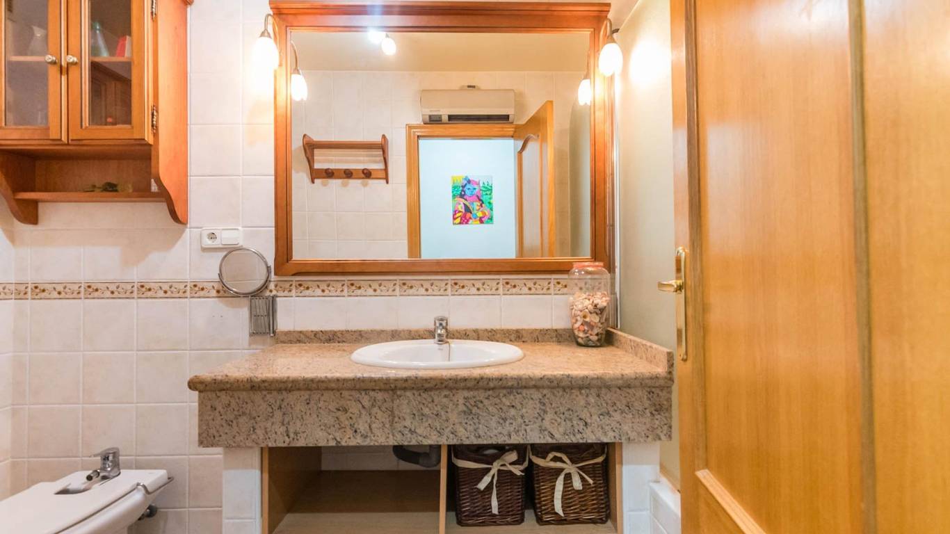 Cuenta con puertas de roble macizo, armarios empotrados, y una cocina independiente de diseño totalmente equipada. Además, dispone de aire acondicionado por splits en todas las estancias, garantizando confort durante todo el año.