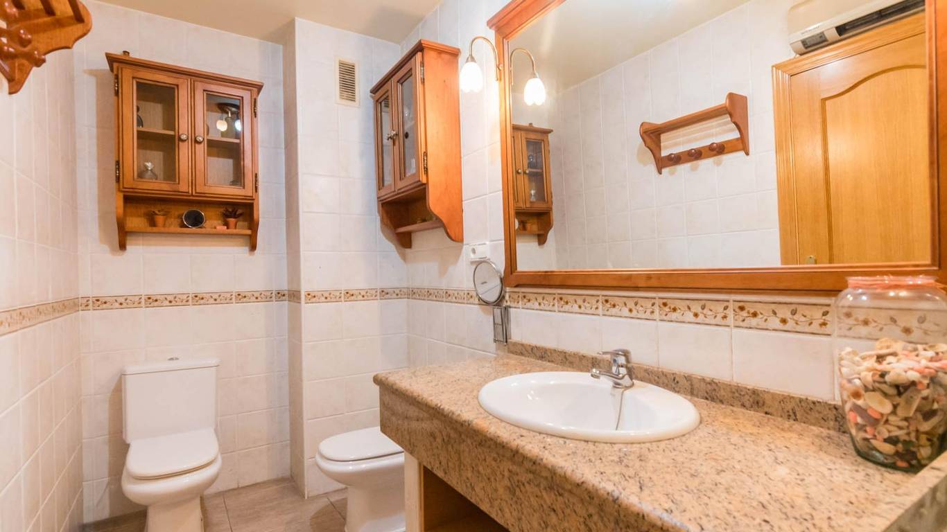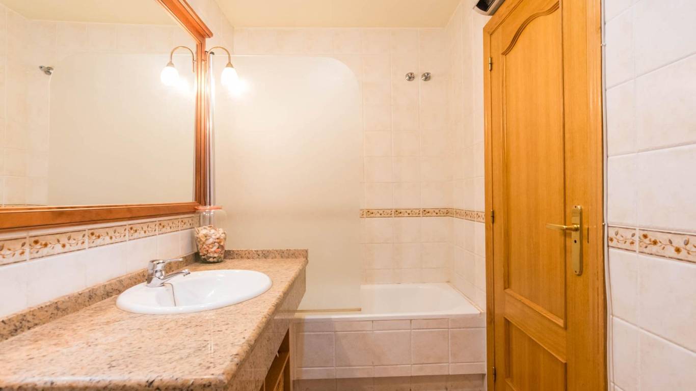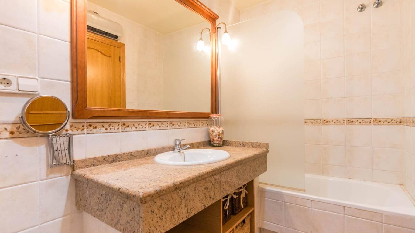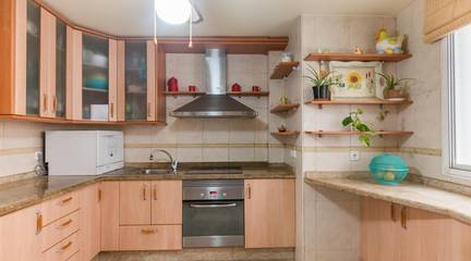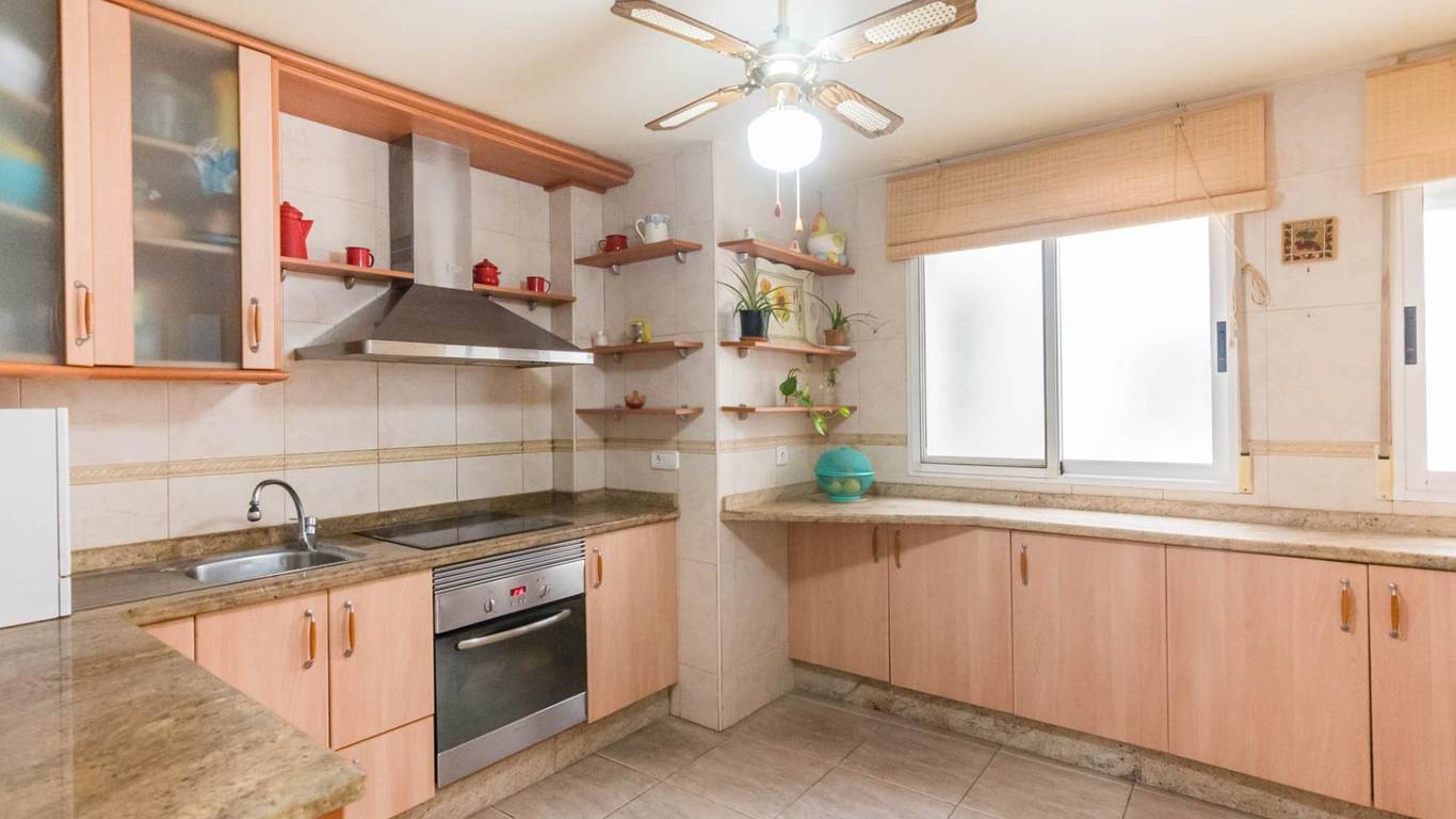 Cuenta con puertas de roble macizo, armarios empotrados, y una cocina independiente de diseño totalmente equipada. Además, dispone de aire acondicionado por splits en todas las estancias, garantizando confort durante todo el año.