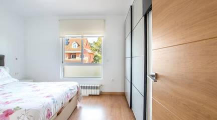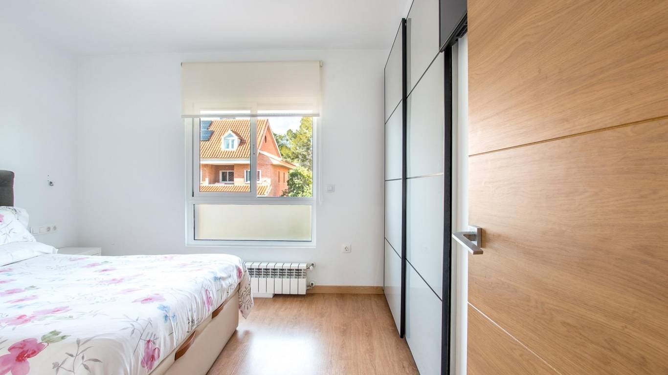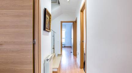 En la buhardilla, un gran dormitorio con vestidor te espera como oasis privado, perfecto para desconectar con vistas privilegiadas y calma total. Ideal para una suite principal o estudio versátil.