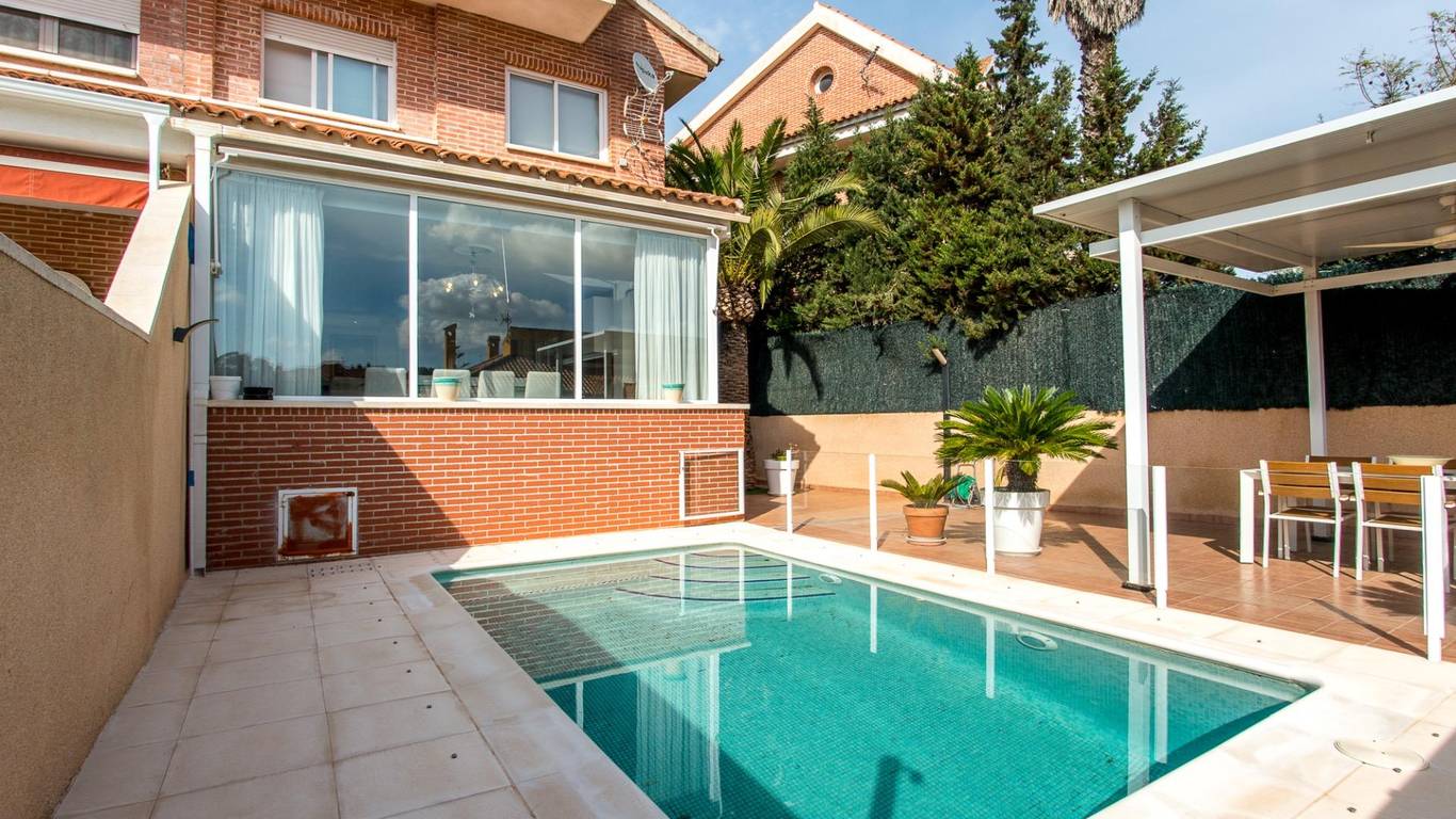Crea el hogar que siempre has soñado e imagina llegar a casa y descubrir un refugio perfecto en Altorreal, en un chalet adosado en una calle sin salida junto al colegio Vistarreal, donde la tranquilidad reina y la piscina independiente te invita a refrescarte cada día.Ubicación Privilegiada.En el corazón de Altorreal, este chalet adosado ofrece paz absoluta en una calle sin salida, pegado al colegio Vistarreal, ideal para familias que valoran la proximidad a la escuela sin sacrificar la privacidad. La zona comunitaria con piscina independiente añade un toque de lujo relajado, perfecto para tardes de verano en Molina de Segura.Planta Baja Luminosa.Entra directamente a un amplio salón con gran mirador que inunda de luz natural orientada al sur, con vistas directas a la piscina que hacen que cada momento sea especial. La cocina grande incluye mesa para comer y salida al exterior, más un aseo de cortesía para tus invitados, todo fluido y acogedor.