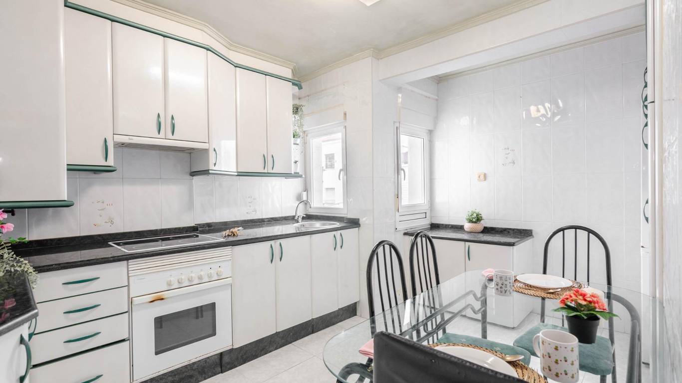 Es muy luminoso, con orientación este-oeste y ventanas exteriores de PVC con doble acristalamiento Climalit. Incluye puerta acorazada, suelos de gres y tarima, calefacción eléctrica, termo de agua caliente y gas ciudad instalado.