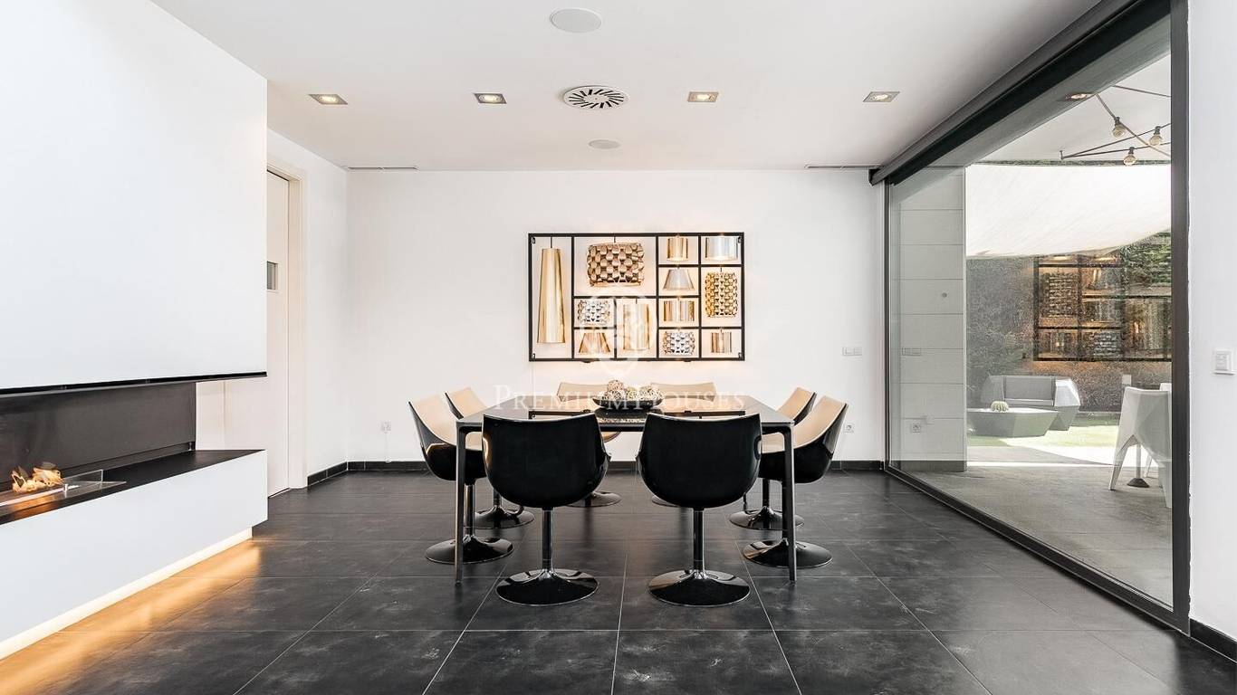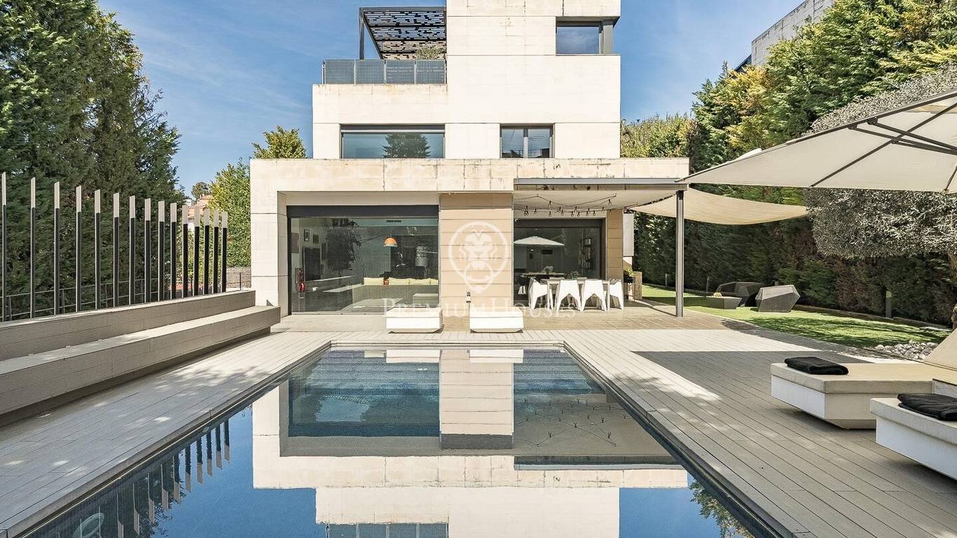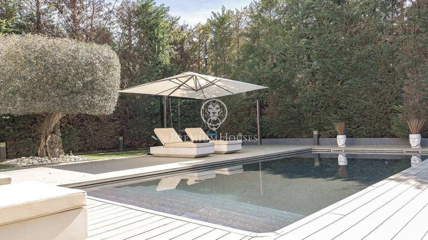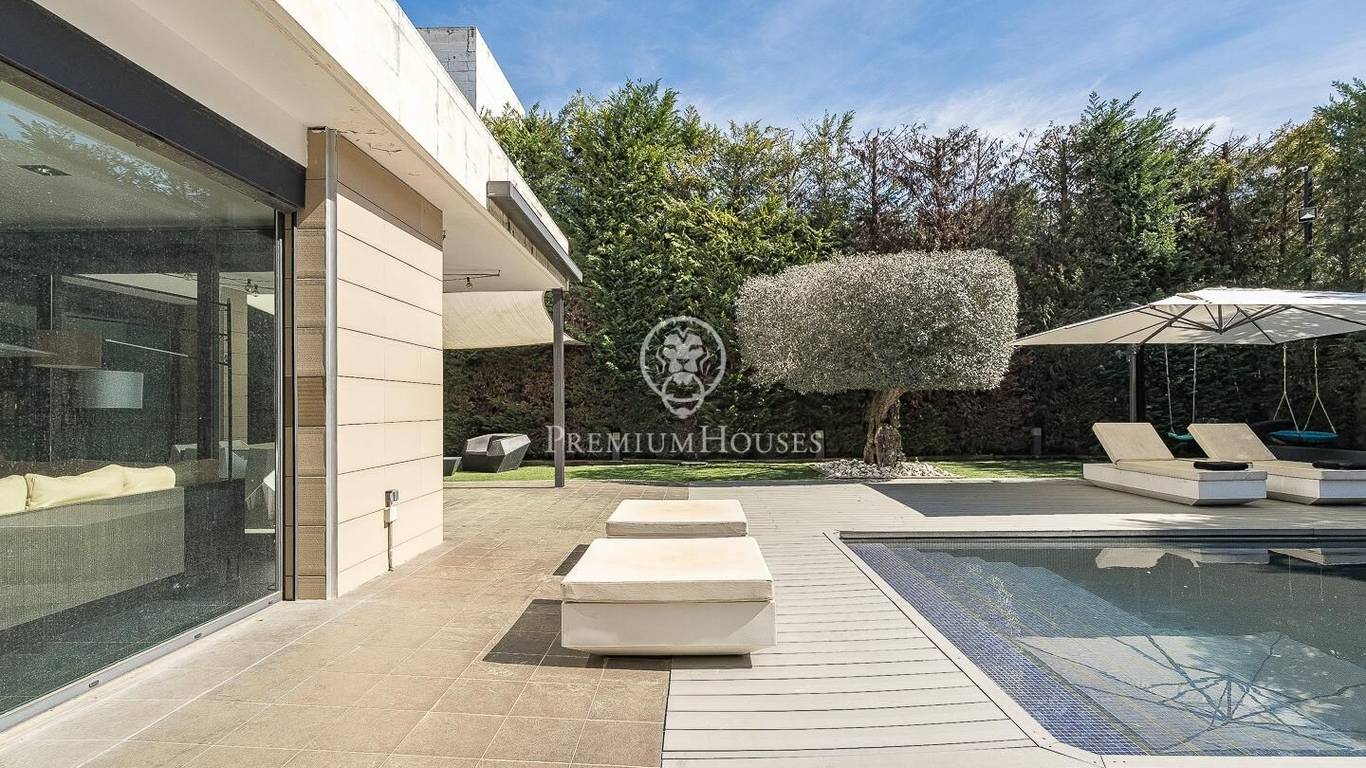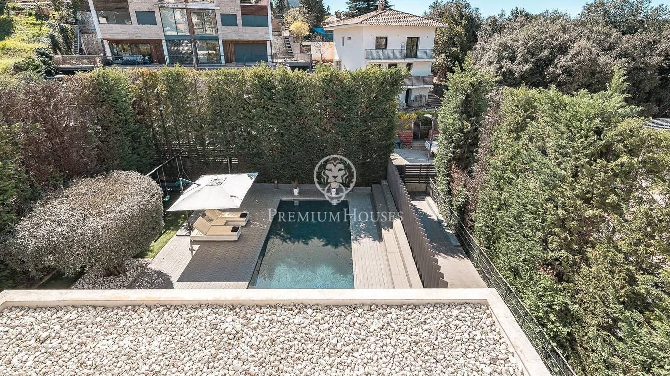 This stunning contemporary-style residence is located in one of the most peaceful and verdant areas of Valldoreix, offering a lifestyle defined by design and privacy. Spanning over 600 sqm, the property unfolds across four levels connected by a convenient elevator, harmoniously integrating with a landscaped plot designed for relaxation. On the main floor, the spectacular double-height living and dining room captivates with its brightness, thanks to large floor-to-ceiling windows that lead directly to the porch and pool area. A minimalist fireplace anchors the room, adding warmth to an open-plan space that flows into a high-end modern kitchen, featuring a central island and a daily breakfast area. This level is completed by an officeperfect for remote workand a guest powder room.The sleeping quarters are organized on the upper floors to ensure maximum tranquility. The first level houses three double en-suite bedrooms, all with high-quality full bathrooms and built-in wardrobes. Meanwhile, the top floor is entirely dedicated to the master suite: an authentic luxury sanctuary featuring a walk-in closet, a private lounge, a bathroom with a designer freestanding tub, and access to a private sun terrace with privileged views.The outdoor space has been meticulously designed, highlighted by a dark-tiled pool that adds a sophisticated touch, surrounded by artificial grass, sunbathing areas, and various chill-out spots to enjoy the Mediterranean climate. Regarding technical features, the house includes parking for four vehicles, a gym or multipurpose room, a laundry room, and an advanced security system. The property also boasts underfloor heating, ducted air conditioning, and LED lighting. Located just minutes from the FGC train station with excellent connections to Barcelona, this villa is the perfect reflection of modern exclusivity.