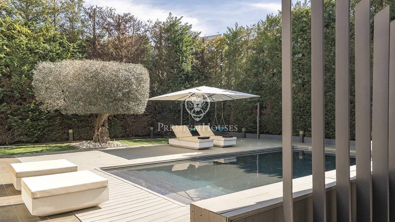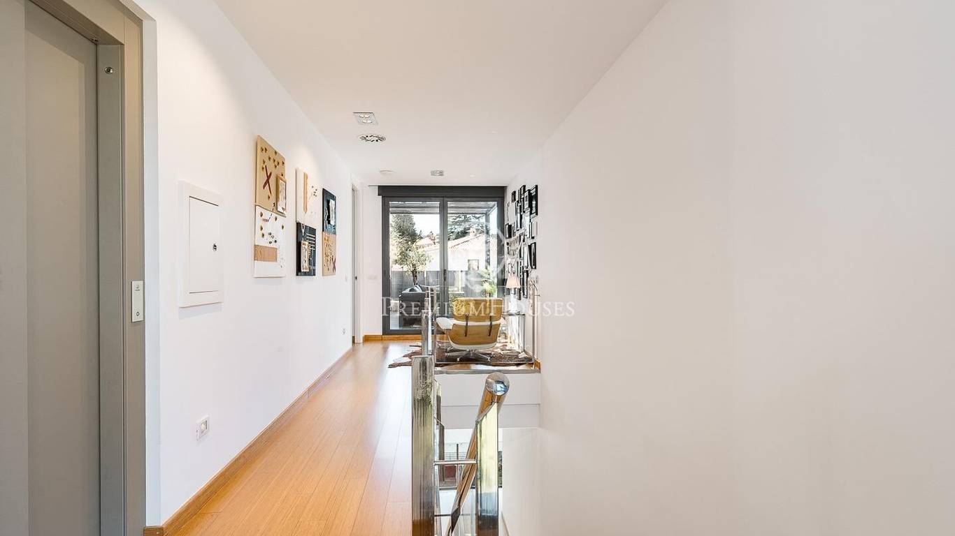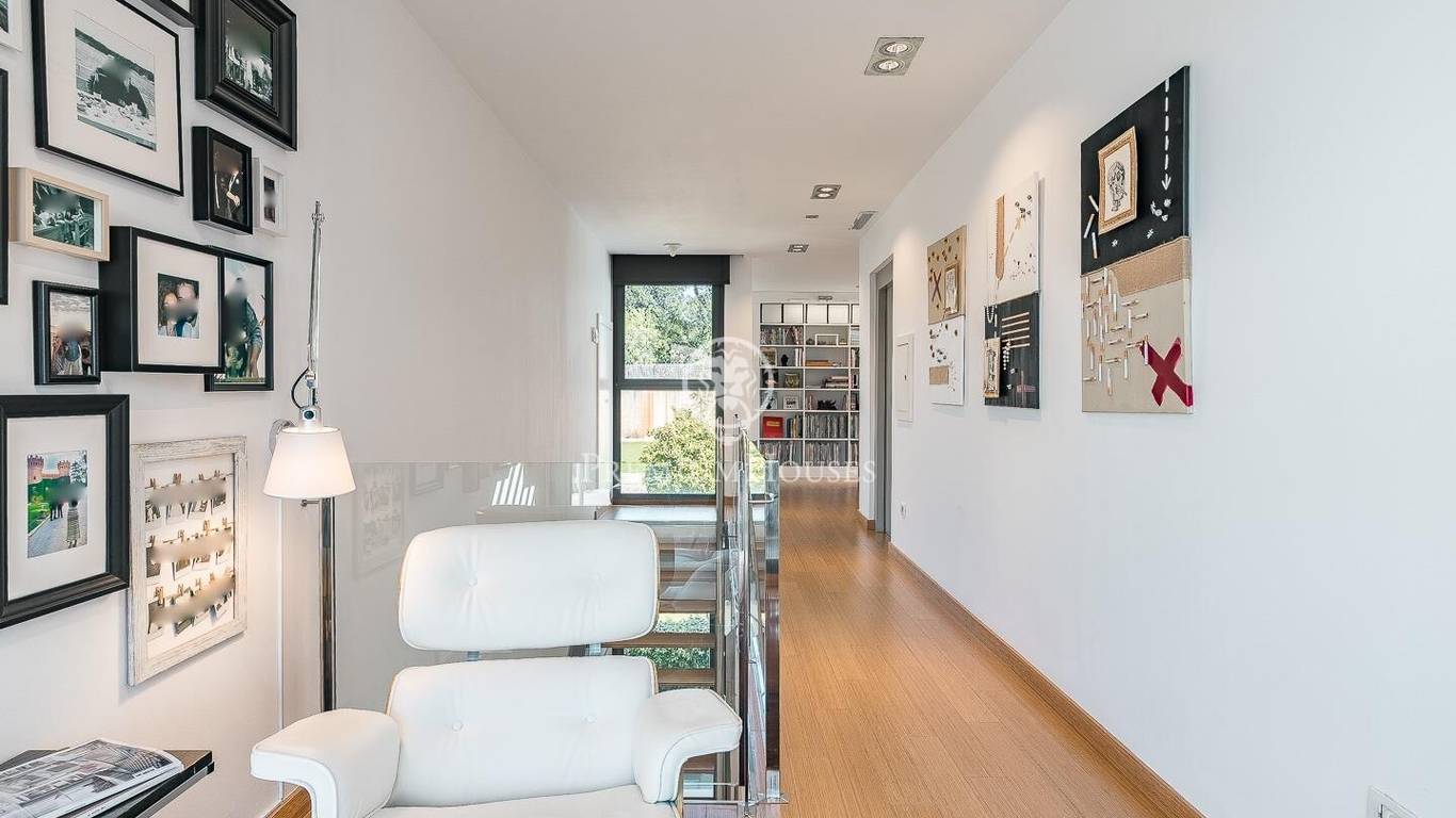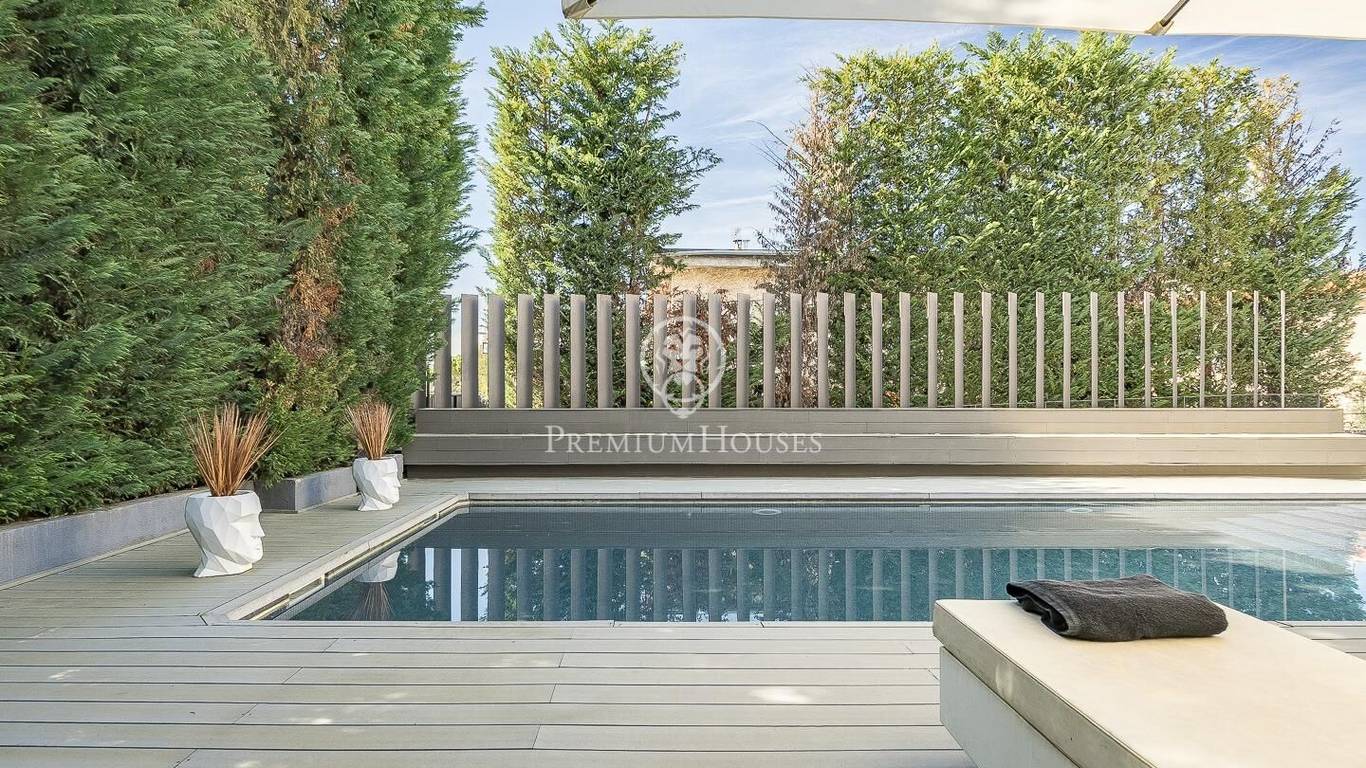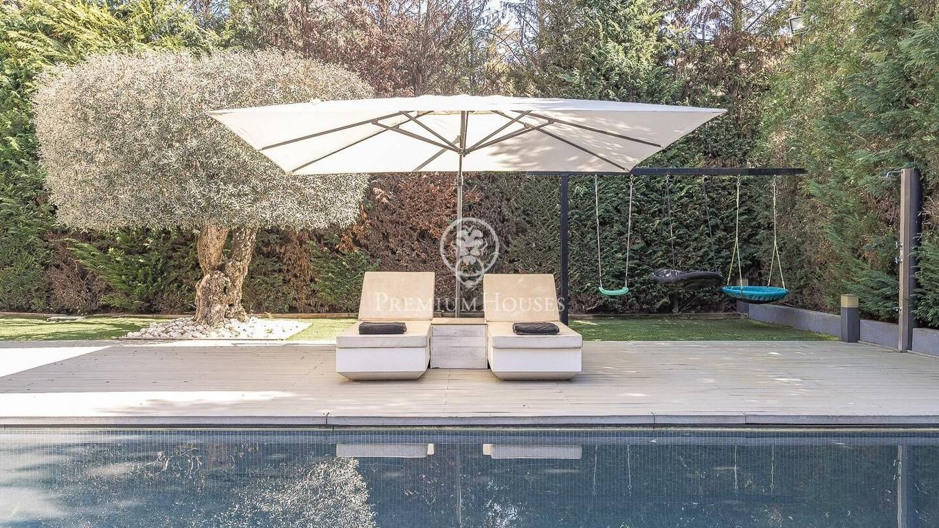 This stunning contemporary-style residence is located in one of the most peaceful and verdant areas of Valldoreix, offering a lifestyle defined by design and privacy. Spanning over 600 sqm, the property unfolds across four levels connected by a convenient elevator, harmoniously integrating with a landscaped plot designed for relaxation. On the main floor, the spectacular double-height living and dining room captivates with its brightness, thanks to large floor-to-ceiling windows that lead directly to the porch and pool area. A minimalist fireplace anchors the room, adding warmth to an open-plan space that flows into a high-end modern kitchen, featuring a central island and a daily breakfast area. This level is completed by an officeperfect for remote workand a guest powder room.The sleeping quarters are organized on the upper floors to ensure maximum tranquility. The first level houses three double en-suite bedrooms, all with high-quality full bathrooms and built-in wardrobes. Meanwhile, the top floor is entirely dedicated to the master suite: an authentic luxury sanctuary featuring a walk-in closet, a private lounge, a bathroom with a designer freestanding tub, and access to a private sun terrace with privileged views.The outdoor space has been meticulously designed, highlighted by a dark-tiled pool that adds a sophisticated touch, surrounded by artificial grass, sunbathing areas, and various chill-out spots to enjoy the Mediterranean climate. Regarding technical features, the house includes parking for four vehicles, a gym or multipurpose room, a laundry room, and an advanced security system. The property also boasts underfloor heating, ducted air conditioning, and LED lighting. Located just minutes from the FGC train station with excellent connections to Barcelona, this villa is the perfect reflection of modern exclusivity.