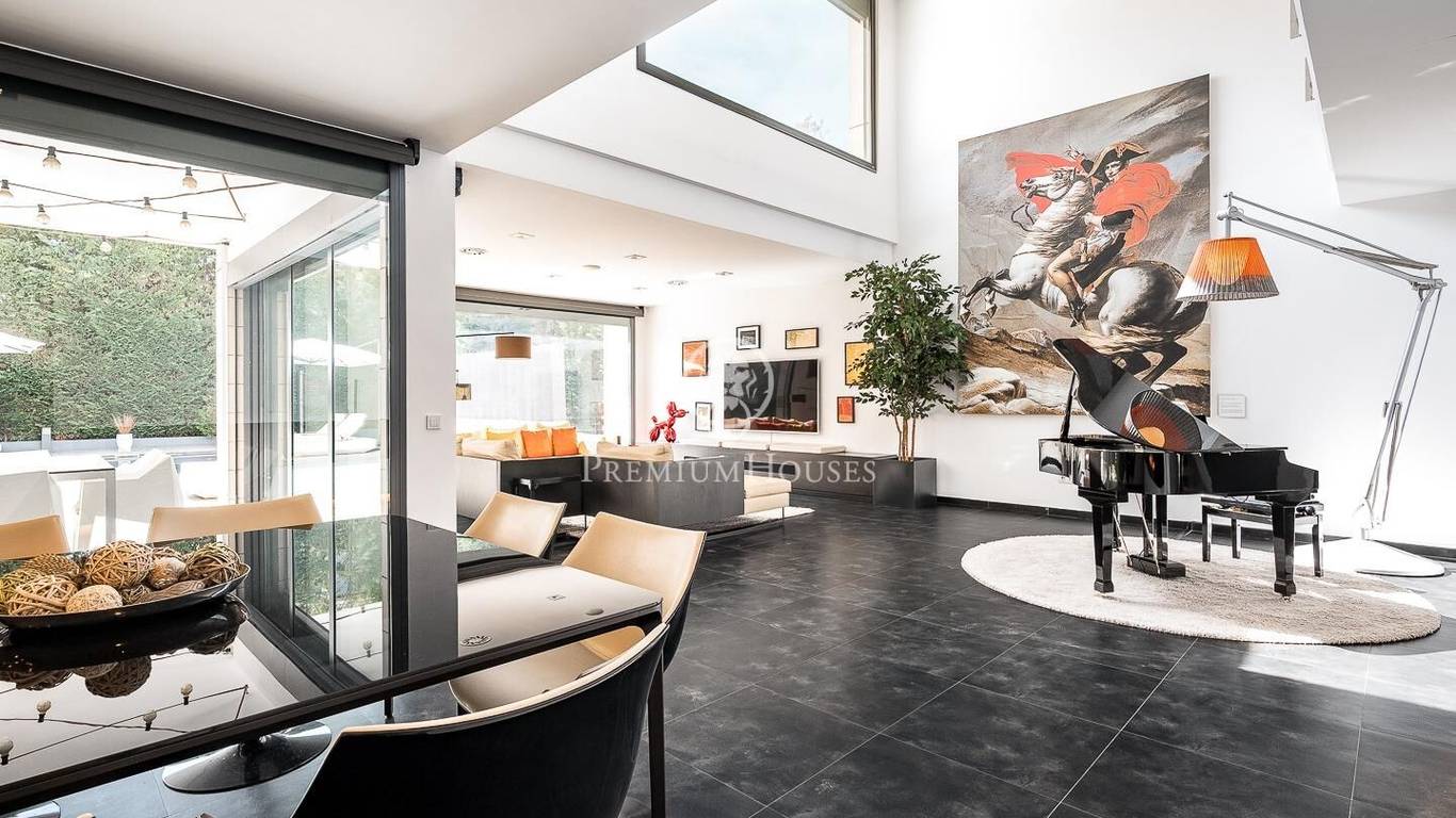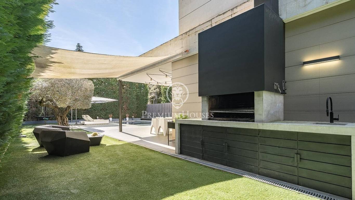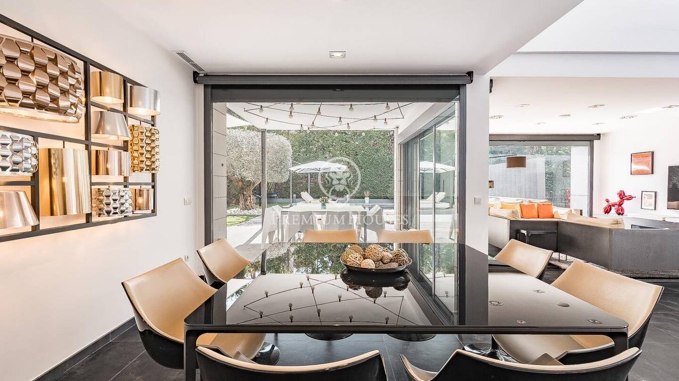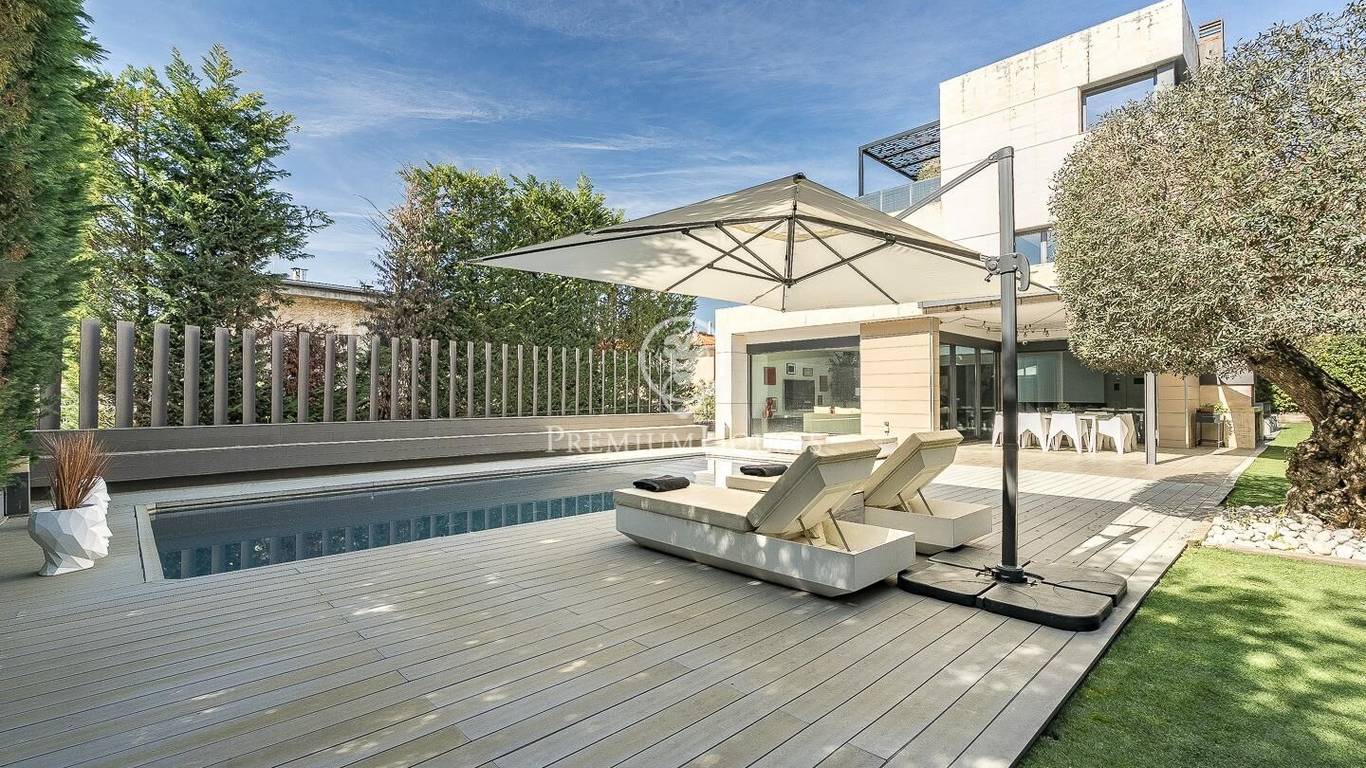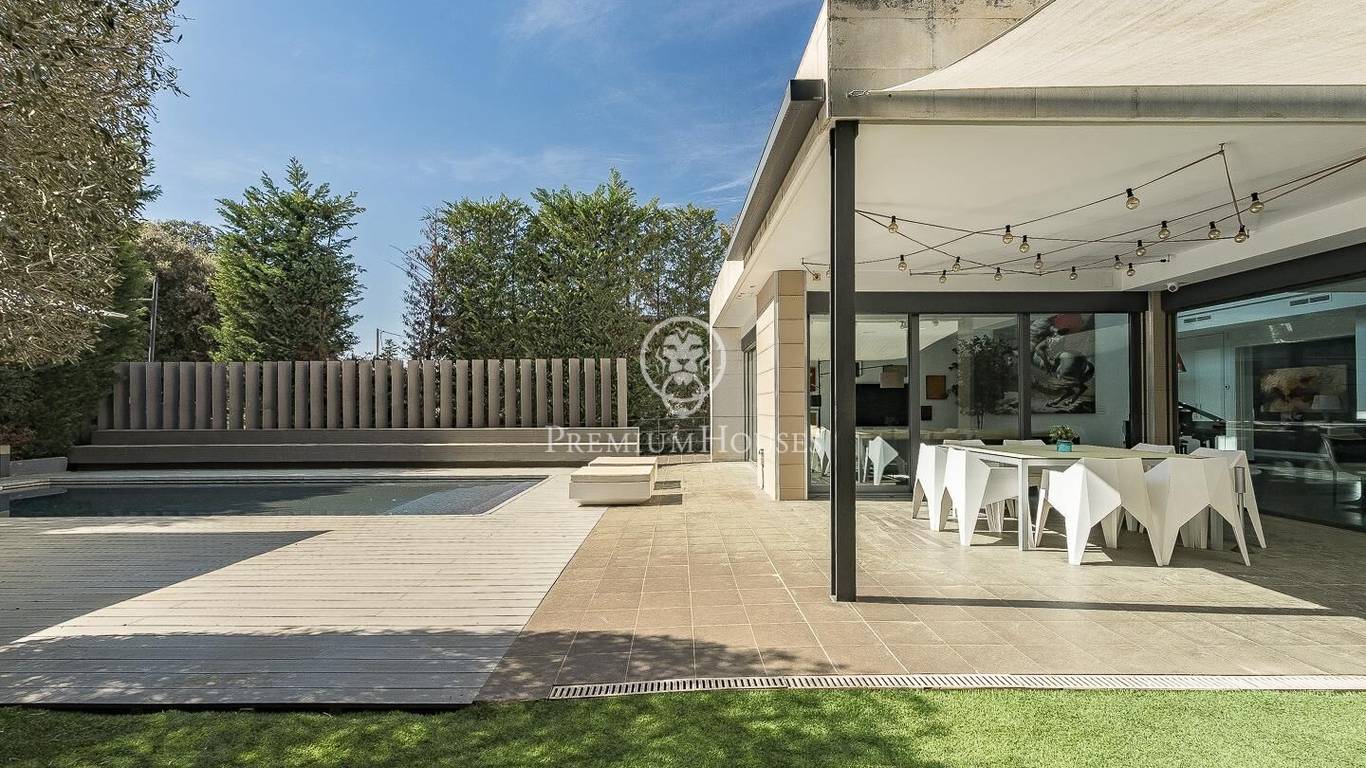 This stunning contemporary-style residence is located in one of the most peaceful and verdant areas of Valldoreix, offering a lifestyle defined by design and privacy. Spanning over 600 sqm, the property unfolds across four levels connected by a convenient elevator, harmoniously integrating with a landscaped plot designed for relaxation. On the main floor, the spectacular double-height living and dining room captivates with its brightness, thanks to large floor-to-ceiling windows that lead directly to the porch and pool area. A minimalist fireplace anchors the room, adding warmth to an open-plan space that flows into a high-end modern kitchen, featuring a central island and a daily breakfast area. This level is completed by an officeperfect for remote workand a guest powder room.The sleeping quarters are organized on the upper floors to ensure maximum tranquility. The first level houses three double en-suite bedrooms, all with high-quality full bathrooms and built-in wardrobes. Meanwhile, the top floor is entirely dedicated to the master suite: an authentic luxury sanctuary featuring a walk-in closet, a private lounge, a bathroom with a designer freestanding tub, and access to a private sun terrace with privileged views.The outdoor space has been meticulously designed, highlighted by a dark-tiled pool that adds a sophisticated touch, surrounded by artificial grass, sunbathing areas, and various chill-out spots to enjoy the Mediterranean climate. Regarding technical features, the house includes parking for four vehicles, a gym or multipurpose room, a laundry room, and an advanced security system. The property also boasts underfloor heating, ducted air conditioning, and LED lighting. Located just minutes from the FGC train station with excellent connections to Barcelona, this villa is the perfect reflection of modern exclusivity.