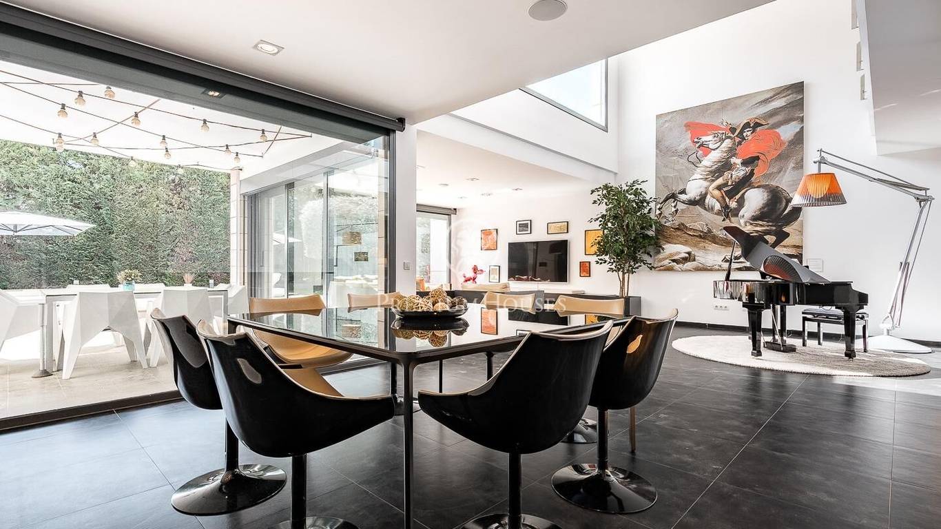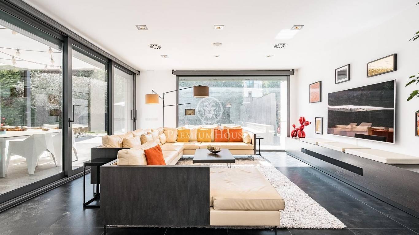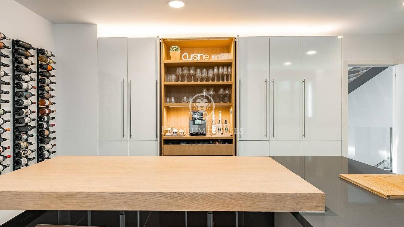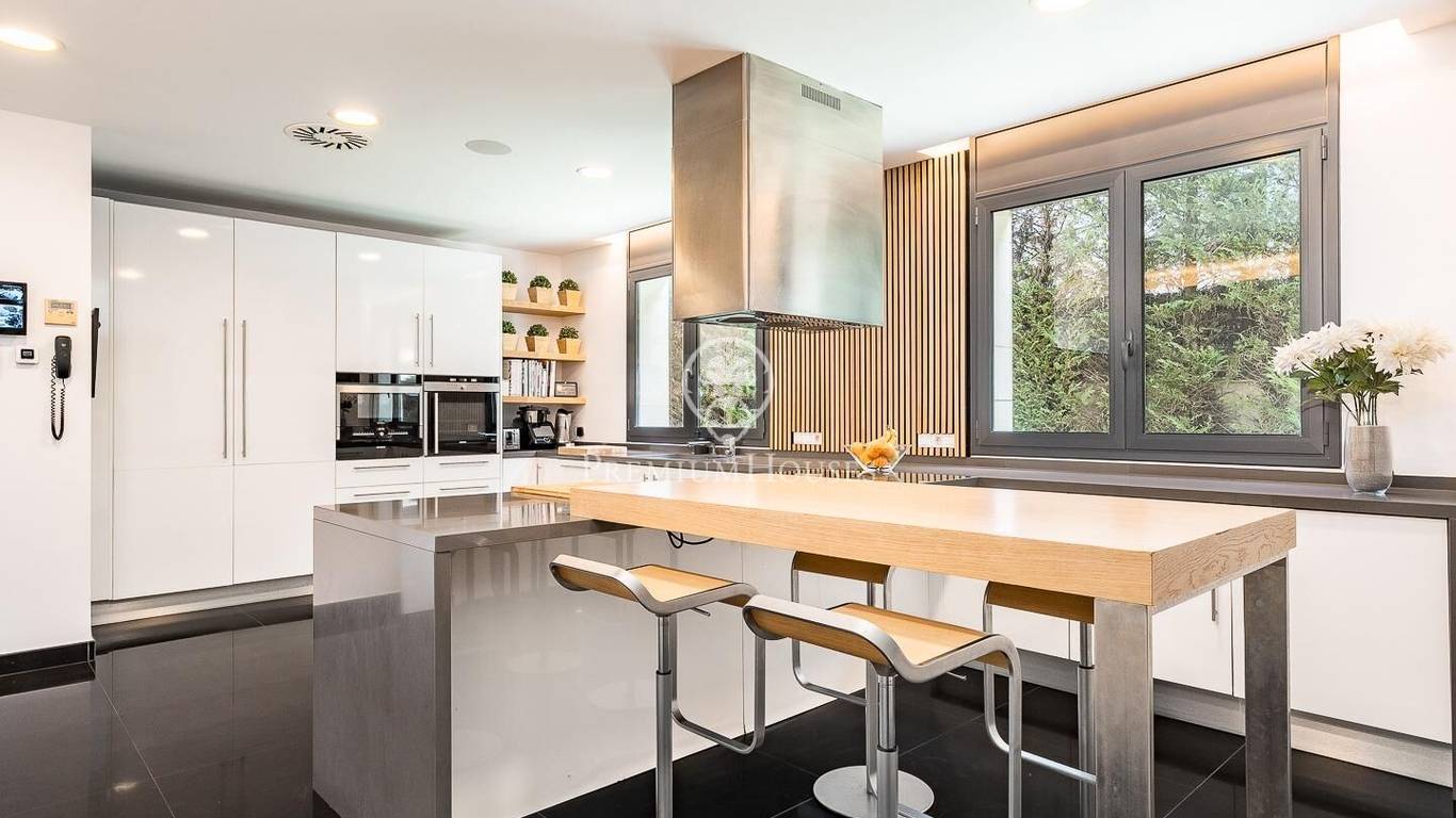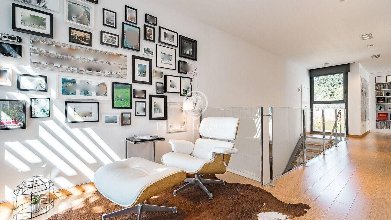 This stunning contemporary-style residence is located in one of the most peaceful and verdant areas of Valldoreix, offering a lifestyle defined by design and privacy. Spanning over 600 sqm, the property unfolds across four levels connected by a convenient elevator, harmoniously integrating with a landscaped plot designed for relaxation. On the main floor, the spectacular double-height living and dining room captivates with its brightness, thanks to large floor-to-ceiling windows that lead directly to the porch and pool area. A minimalist fireplace anchors the room, adding warmth to an open-plan space that flows into a high-end modern kitchen, featuring a central island and a daily breakfast area. This level is completed by an officeperfect for remote workand a guest powder room.The sleeping quarters are organized on the upper floors to ensure maximum tranquility. The first level houses three double en-suite bedrooms, all with high-quality full bathrooms and built-in wardrobes. Meanwhile, the top floor is entirely dedicated to the master suite: an authentic luxury sanctuary featuring a walk-in closet, a private lounge, a bathroom with a designer freestanding tub, and access to a private sun terrace with privileged views.The outdoor space has been meticulously designed, highlighted by a dark-tiled pool that adds a sophisticated touch, surrounded by artificial grass, sunbathing areas, and various chill-out spots to enjoy the Mediterranean climate. Regarding technical features, the house includes parking for four vehicles, a gym or multipurpose room, a laundry room, and an advanced security system. The property also boasts underfloor heating, ducted air conditioning, and LED lighting. Located just minutes from the FGC train station with excellent connections to Barcelona, this villa is the perfect reflection of modern exclusivity.