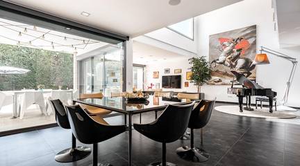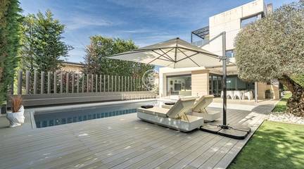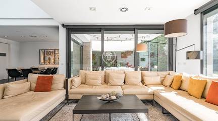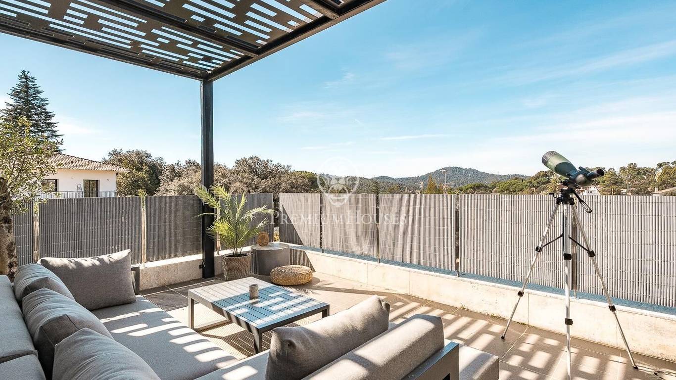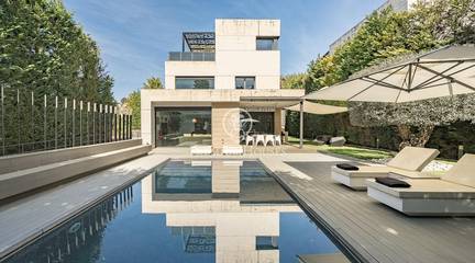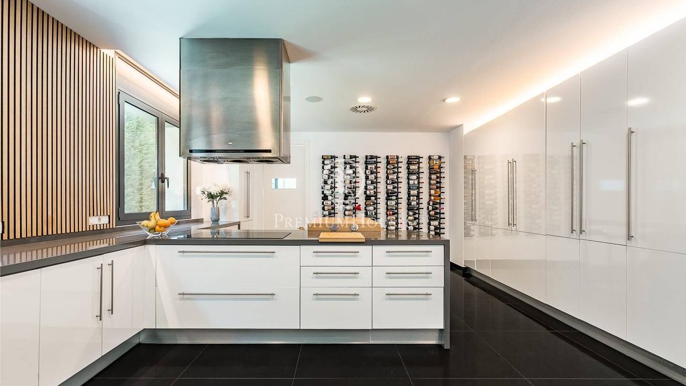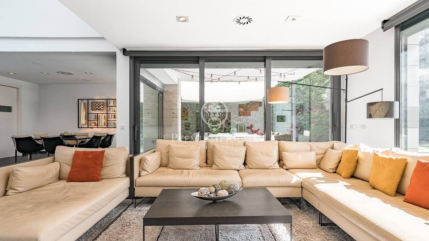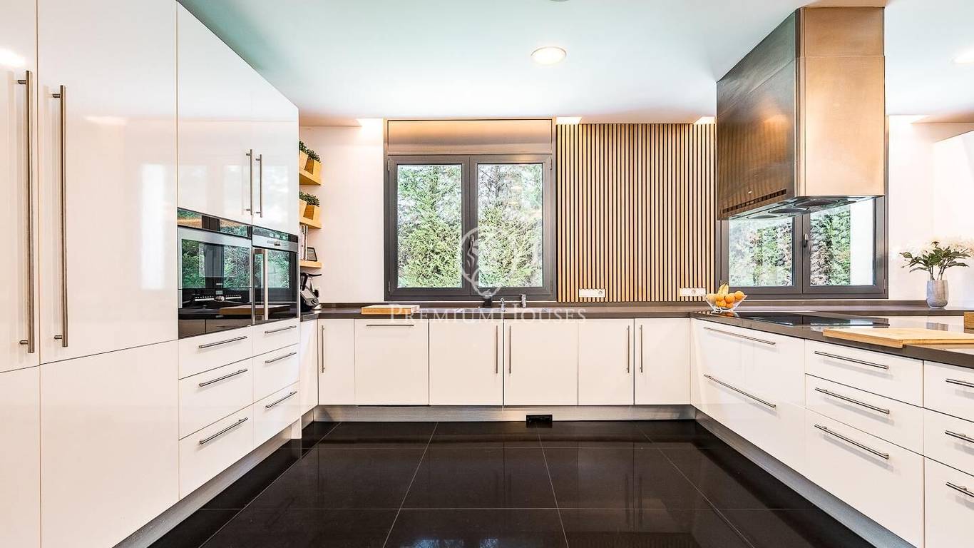 This stunning contemporary-style residence is located in one of the most peaceful and verdant areas of Valldoreix, offering a lifestyle defined by design and privacy. Spanning over 600 sqm, the property unfolds across four levels connected by a convenient elevator, harmoniously integrating with a landscaped plot designed for relaxation. On the main floor, the spectacular double-height living and dining room captivates with its brightness, thanks to large floor-to-ceiling windows that lead directly to the porch and pool area. A minimalist fireplace anchors the room, adding warmth to an open-plan space that flows into a high-end modern kitchen, featuring a central island and a daily breakfast area. This level is completed by an officeperfect for remote workand a guest powder room.The sleeping quarters are organized on the upper floors to ensure maximum tranquility. The first level houses three double en-suite bedrooms, all with high-quality full bathrooms and built-in wardrobes. Meanwhile, the top floor is entirely dedicated to the master suite: an authentic luxury sanctuary featuring a walk-in closet, a private lounge, a bathroom with a designer freestanding tub, and access to a private sun terrace with privileged views.The outdoor space has been meticulously designed, highlighted by a dark-tiled pool that adds a sophisticated touch, surrounded by artificial grass, sunbathing areas, and various chill-out spots to enjoy the Mediterranean climate. Regarding technical features, the house includes parking for four vehicles, a gym or multipurpose room, a laundry room, and an advanced security system. The property also boasts underfloor heating, ducted air conditioning, and LED lighting. Located just minutes from the FGC train station with excellent connections to Barcelona, this villa is the perfect reflection of modern exclusivity.