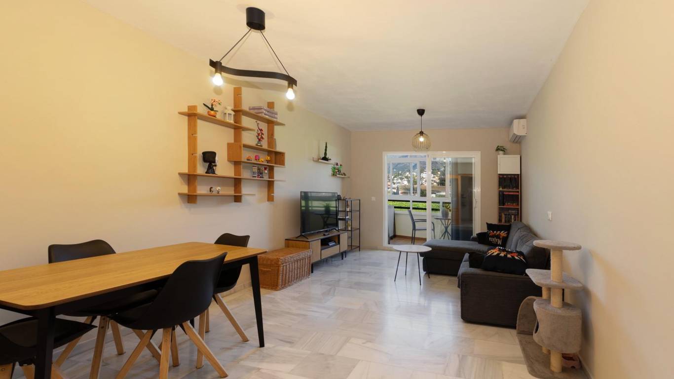 Te presentamos este excepcional piso en la apacible muy cerca del Corte inglés Mijas, en la zona de Las Cañadas, Mijas. Con una superficie construida de 138 m y útil de 96.1 m, esta propiedad se adapta a tus necesidades ofreciendo un diseño cómodo y moderno. El luminoso salón destaca por su orientación Noroeste que inunda el espacio con luz natural durante todo el día. Cuenta con 3 habitaciones una amplia doble para tu descanso como dormitorio principal, además de dos sencillas ideales para niños o invitados. Dispone también de dos baños completos equipados pensando siempre en tu confort diario. Su estado es impecable: listo para entrar a vivir sin necesidad de realizar reformas ni ajustes adicionales. Otro gran atractivo es su acceso directo al parking privado incluido entre los beneficios destacados. Por si fuera poco, está situada cerca de centros comerciales esenciales donde encontrarás todos los servicios necesarios así como colegios cercanos perfectos para familias. Con vistas espectaculares hacia el entorno natural circundante que realzan aún más la calidad del hogar. No pierdas esta oportunidad única.