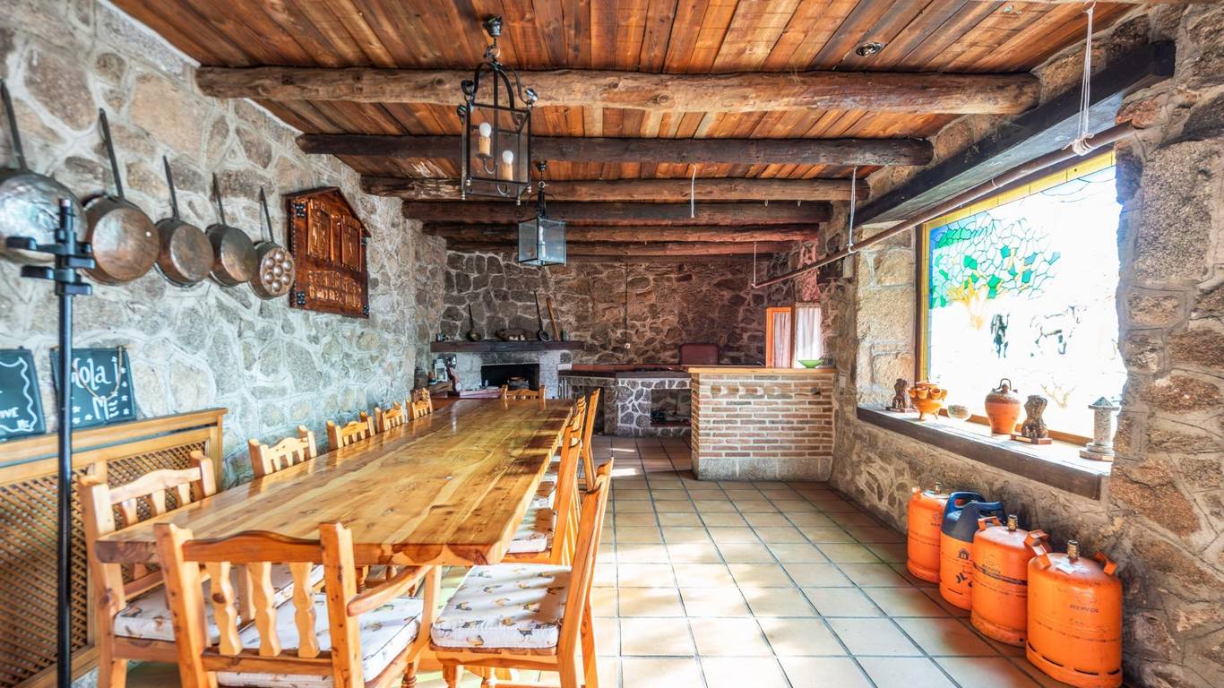 The estate features an impressive main residence of 616 m distributed over two floors. On the ground floor, there is a spectacular 100 m living room, a spacious kitchen, bathroom and several rooms, all within a bright interior with high ceilings and an elegant and welcoming atmosphere. The property also includes a fireplace, barbecue area, attic, pantry, built-in wardrobes, basement and reinforced door. On the upper floor there are six large bedrooms and three bathrooms, offering ample capacity for family and guests.