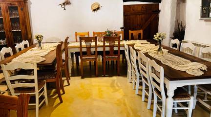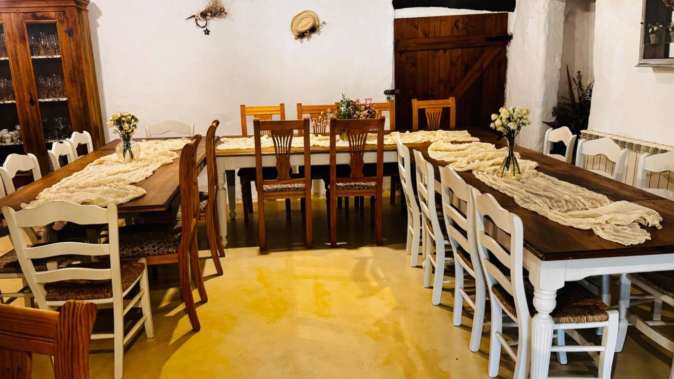 La Finca construida en el Siglo XII, consta de 8 dormitorios, con una construcción principal 687 m2, 6 baños, 2 salas de estar, zona de barbacoa, piscina, vistas panorámicas, una sala para eventos de aproximadamente 120 m2, capacidad máxima de 24 personas.