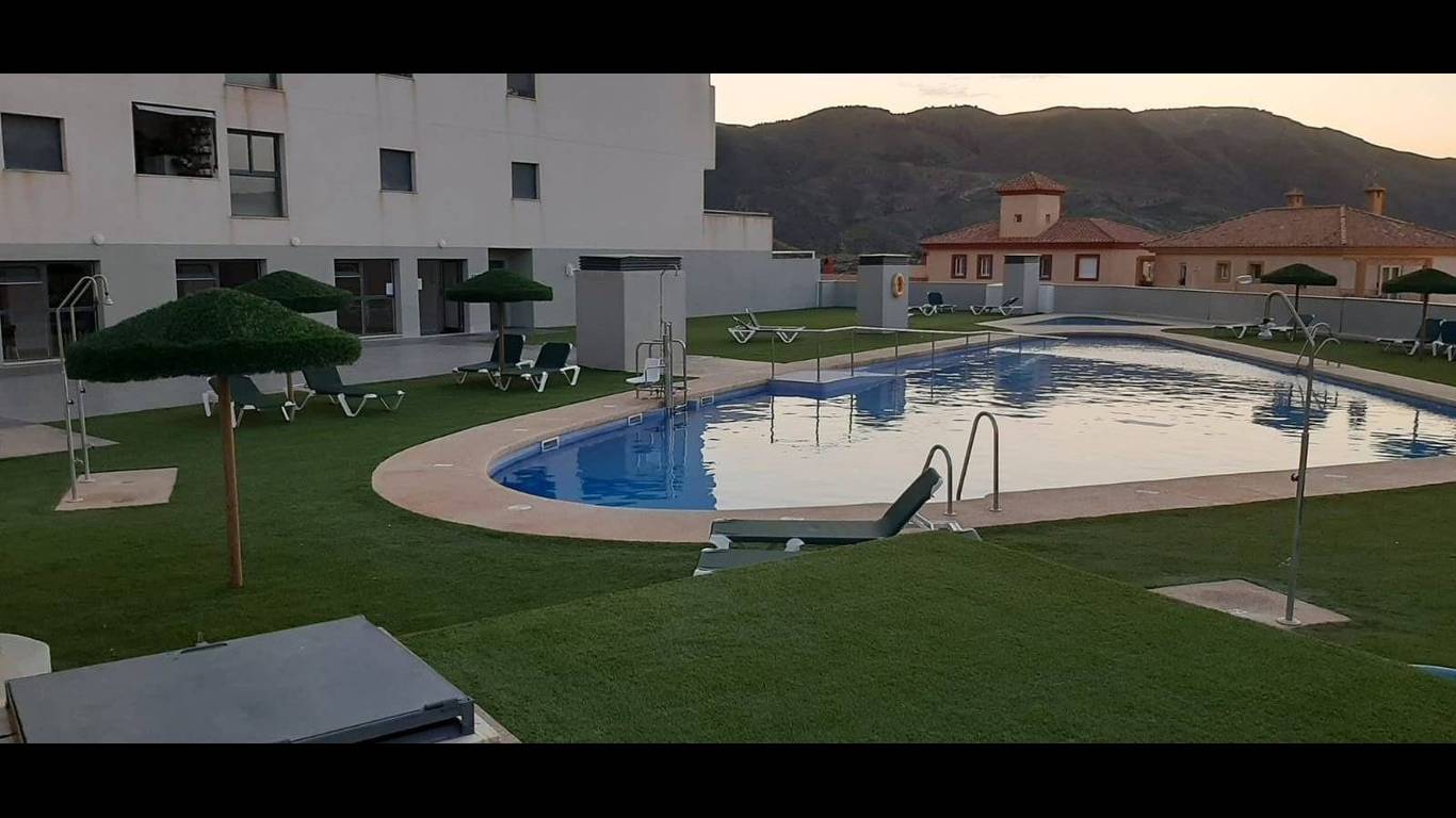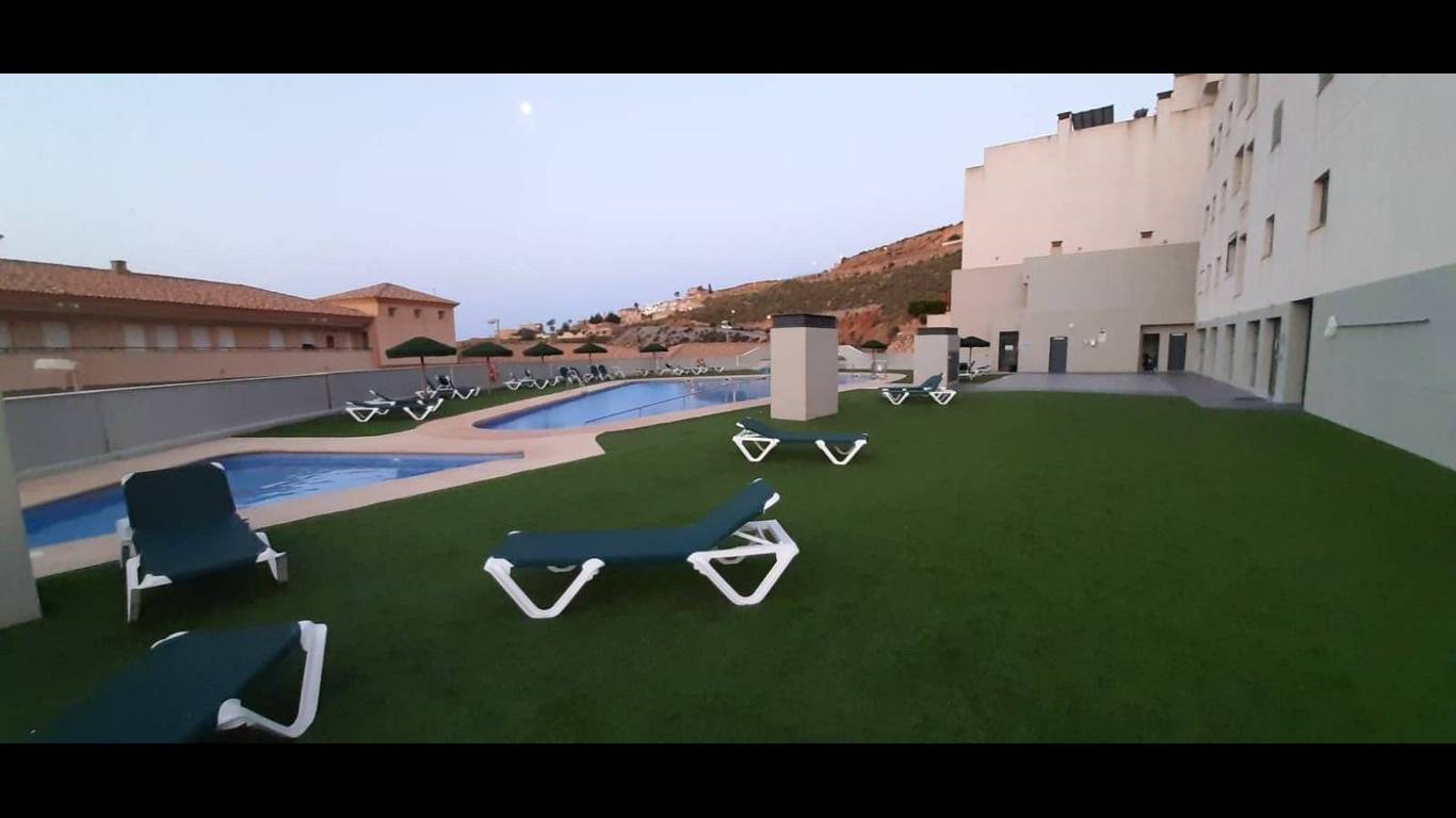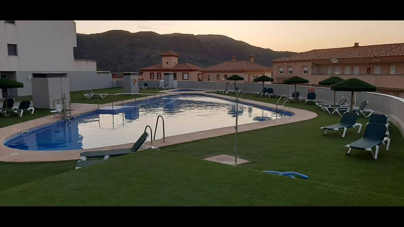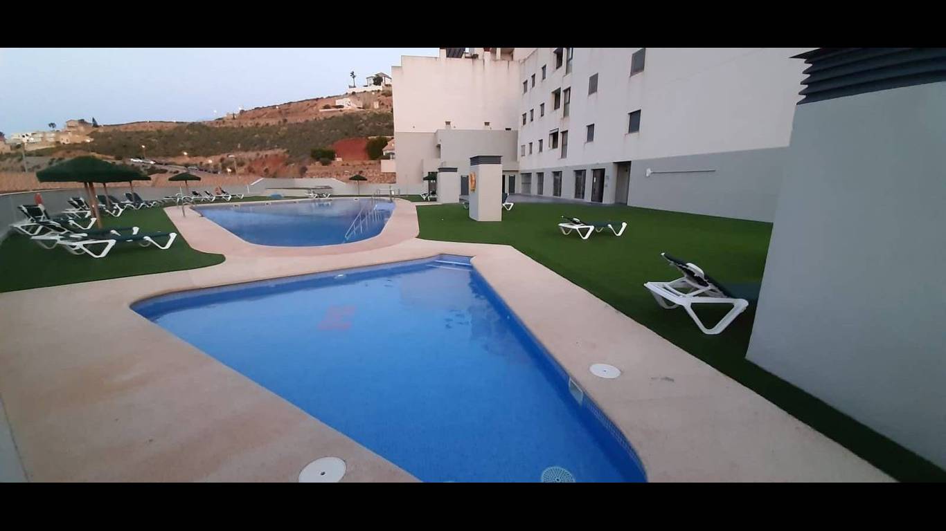 Dos Piscinas al Aire Libre: Rodeadas de zonas de solárium con tumbonas y sombrillas, ideales para disfrutar del sol de Almería durante todo el verano.