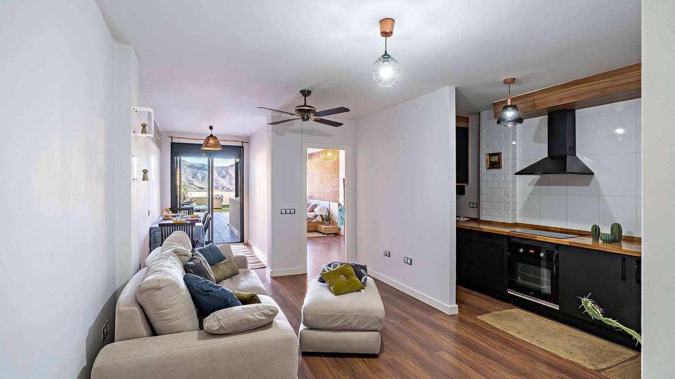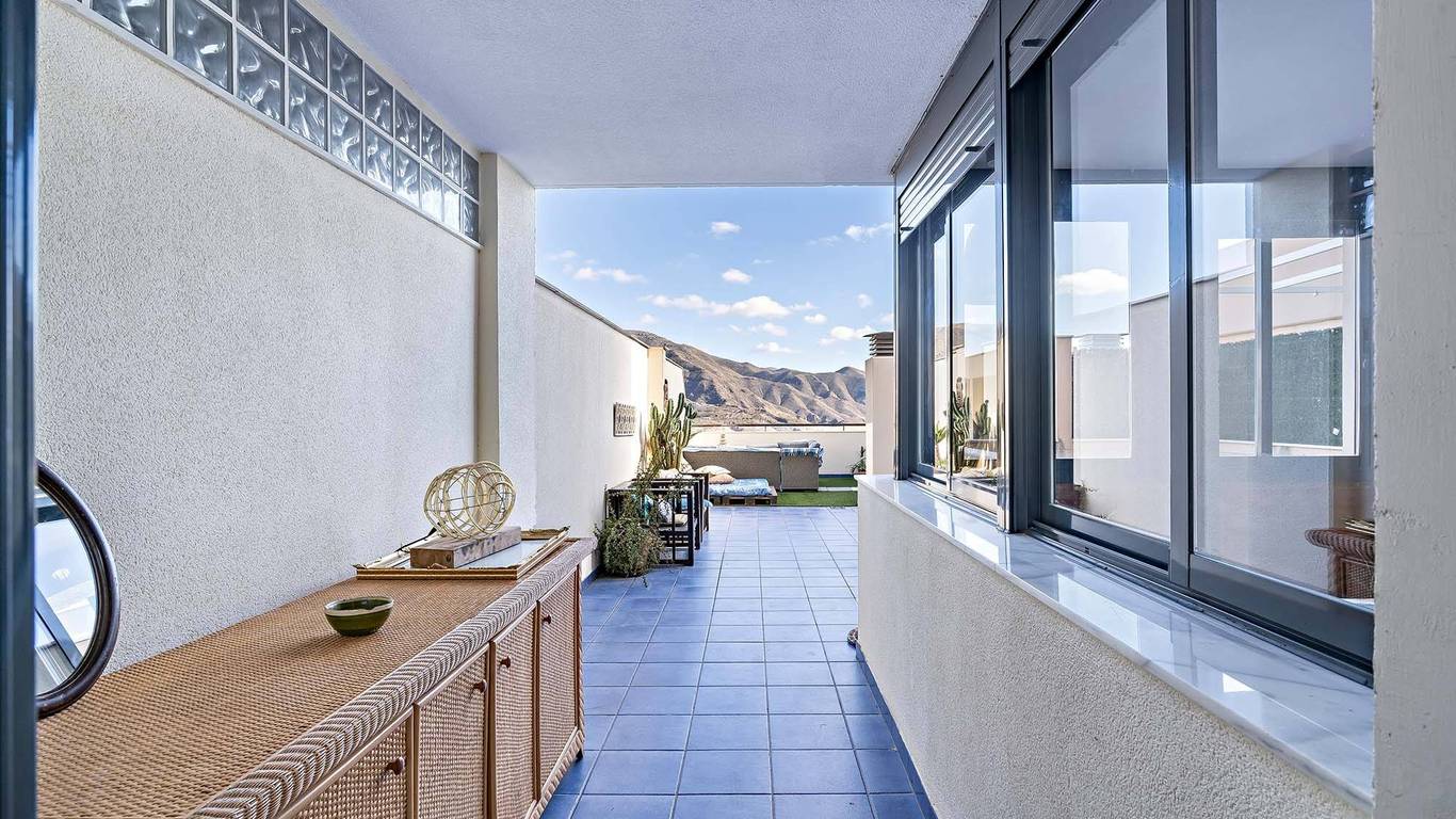 El corazón de esta vivienda es, sin duda, su impresionante terraza de más de 50 metros cuadrados. Imagínese despertar cada mañana con el sol naciente sobre el Mar Mediterráneo y disfrutar de un café con vistas panorámicas que quitan el aliento. Este espacio exterior no es solo un balcón, es una extensión de la vivienda diseñada para vivirla. Con espacio de sobra para zonas de comedor, descanso con sofás y tumbonas, es el lugar perfecto para organizar cenas inolvidables bajo las estrellas, practicar yoga al aire libre, o simplemente relajarse y desconectar mientras contempla la inmensidad del mar y la belleza del campo de golf que se extiende a sus pies. La privacidad y el entorno natural garantizan que cada momento en la terraza sea un refugio de paz y tranquilidad.
