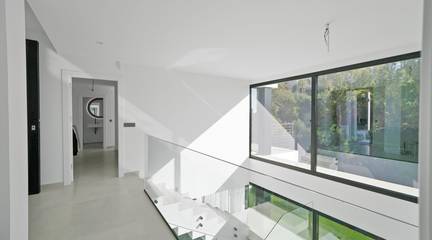 Set on a 1,118 m plot, the property offers 625 m of built space, designed with elegant minimalist architecture featuring white tones and large glass surfaces that create a seamless connection between indoor and outdoor living areas.