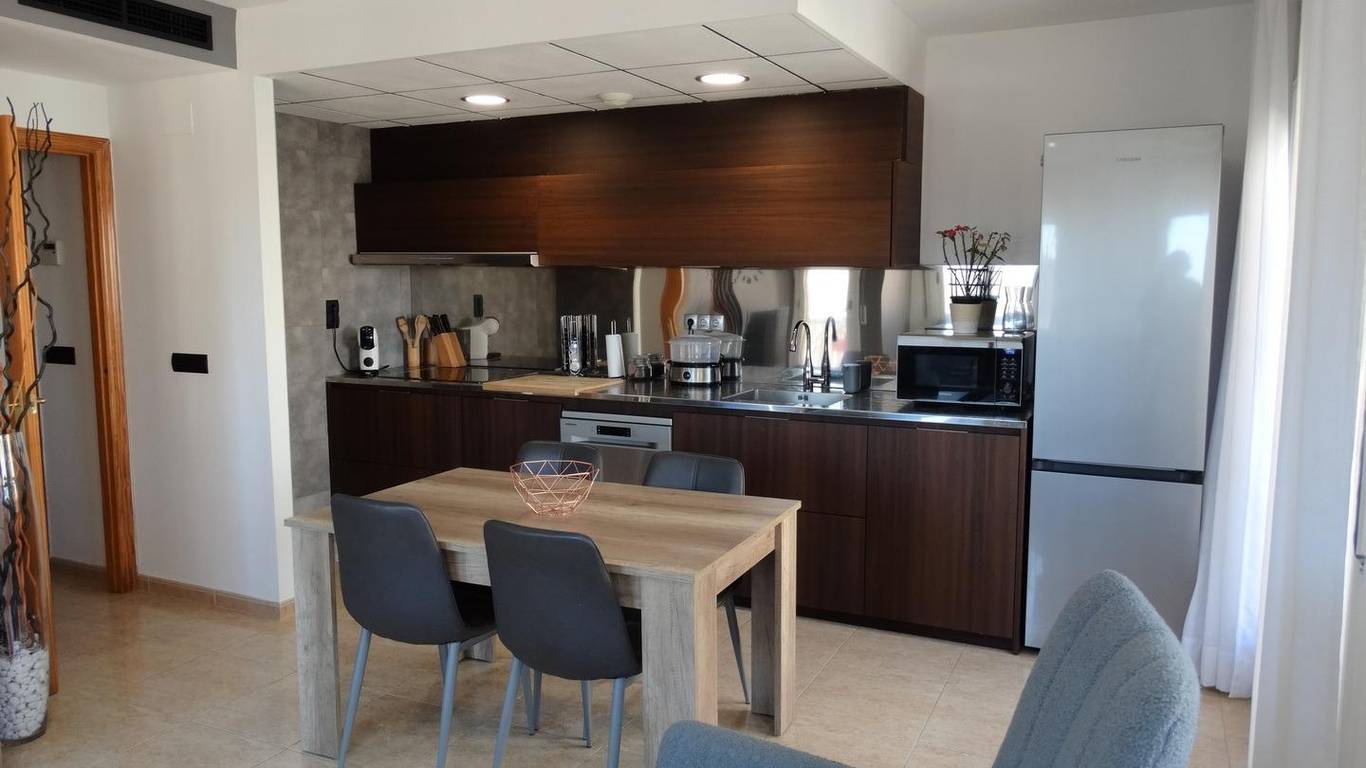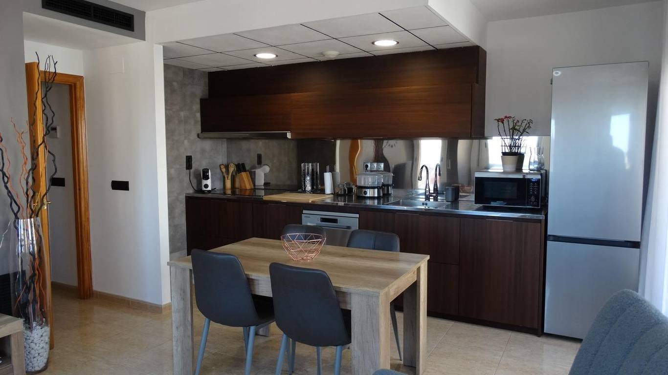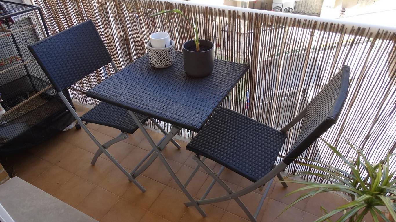 It features 2 balconies/small terraces: one accessible from the dining room and the other accessible from both the dining room and the single bedroom. It has ducted air conditioning, ideal for maintaining a comfortable temperature year-round.