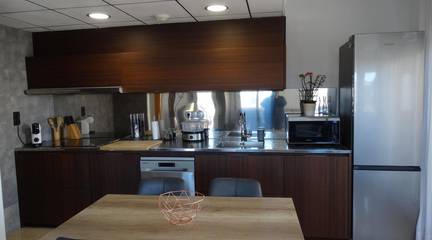 - Open-plan kitchen/living/dining room