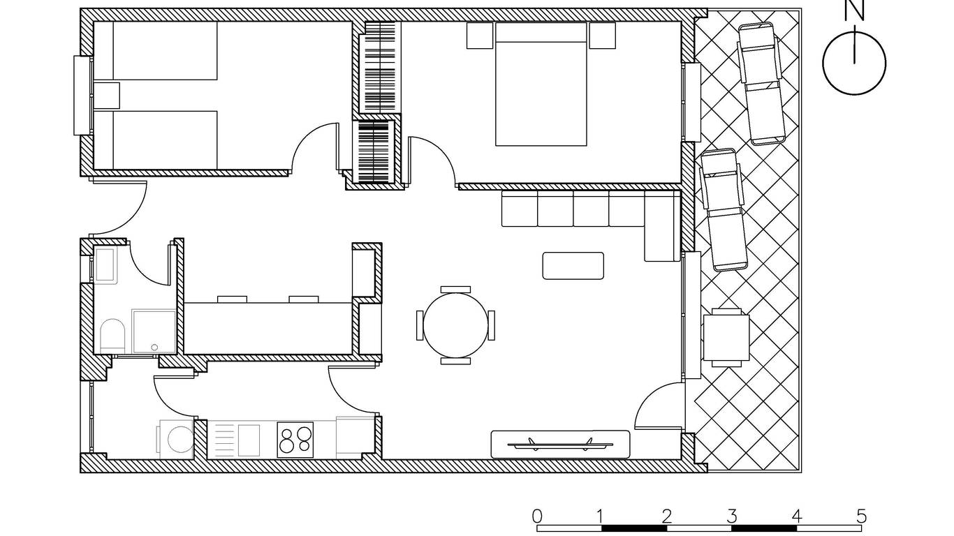 Y la vivienda, gracias a su estructura con pilares metálicos, permite una redistribución mucho más libre, más limpia y más ambiciosa.
