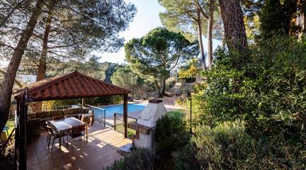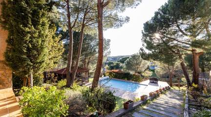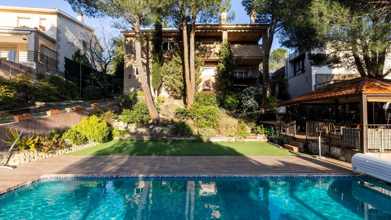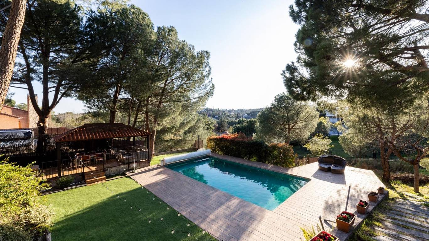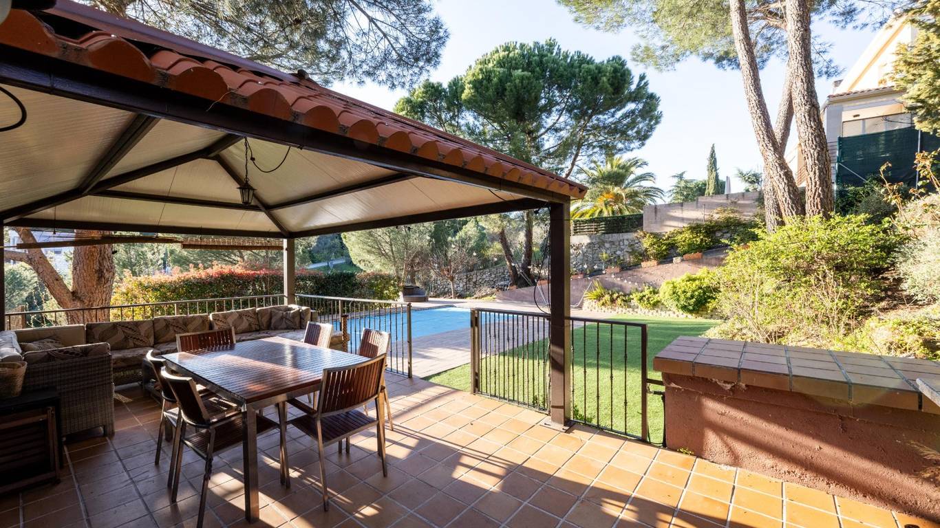 El chalet dispone de una amplia zona ajardinada, ideal para disfrutar al aire libre. La parcela alberga una piscina de sal, cenador y diferentes espacios pensados para el descanso y el entretenimiento, todo ello acompañado de estupendas vistas que refuerzan la sensación de tranquilidad y exclusividad.