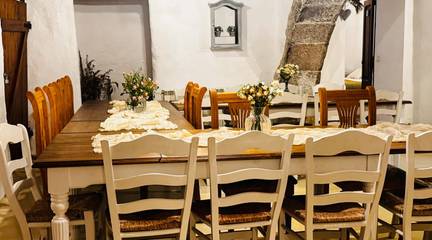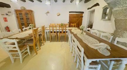 La Finca construida en el Siglo XII, consta de 8 dormitorios, con una construcción principal 687 m2, 6 baños, 2 salas de estar, zona de barbacoa, piscina, vistas panorámicas, una sala para eventos de aproximadamente 120 m2, capacidad máxima de 24 personas.